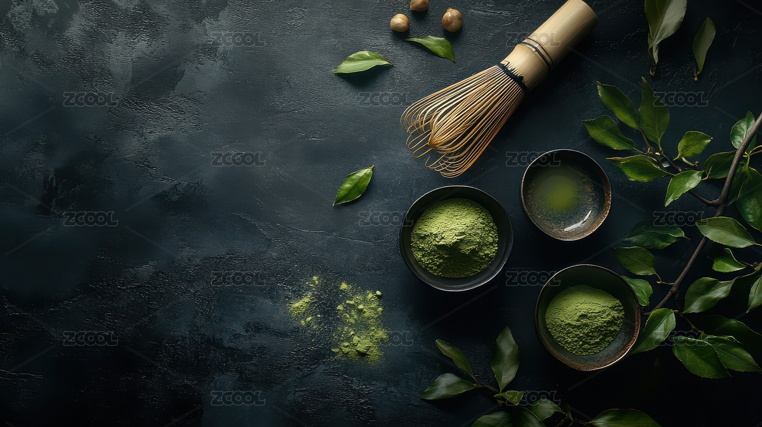 绿叶,装饰,抹茶,木质,茶道,静物,茶筅,粉末,暗色
