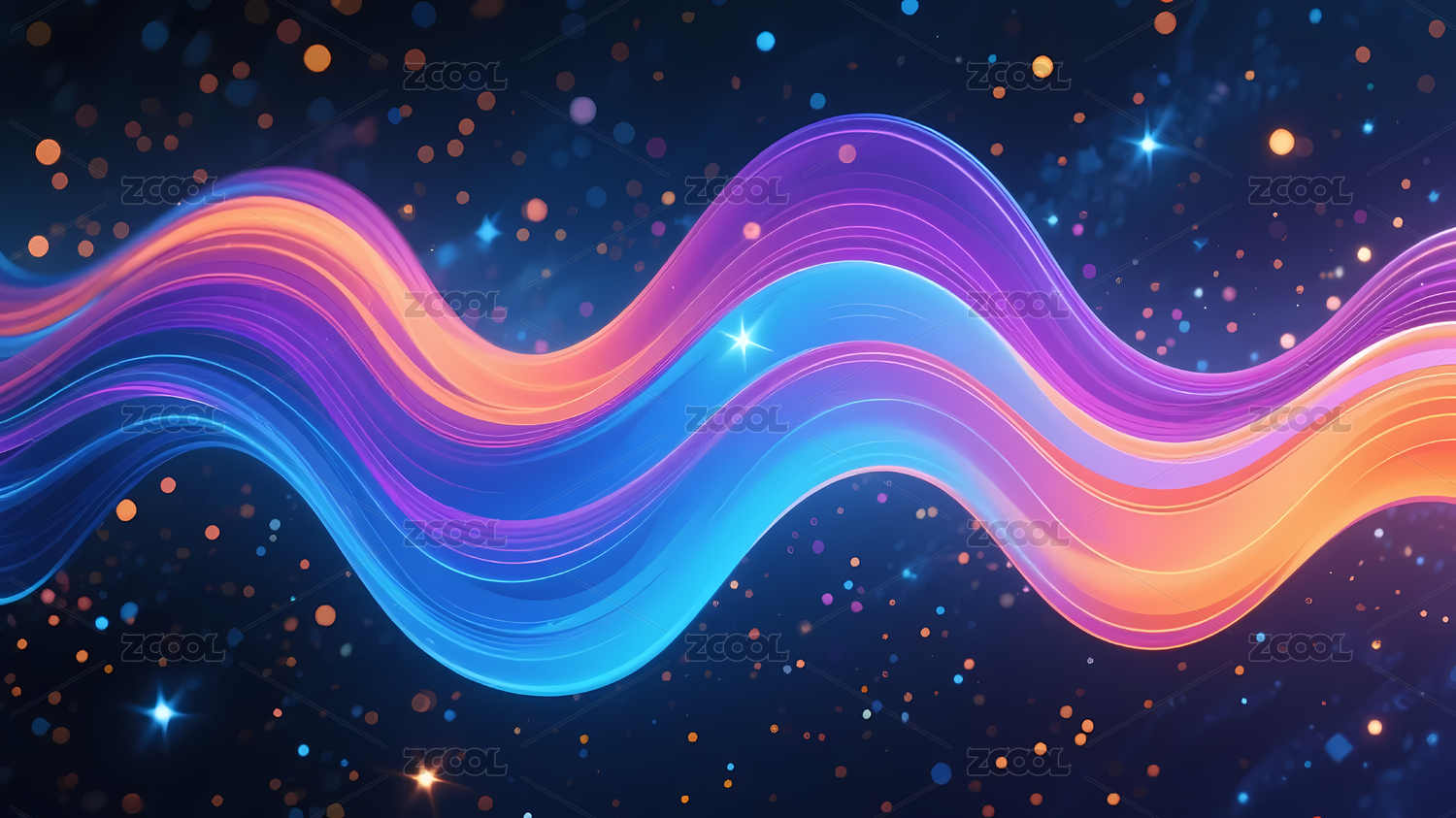 蓝色,星空,波浪,紫色,橙色,渐变,光点,梦幻,神秘,动感