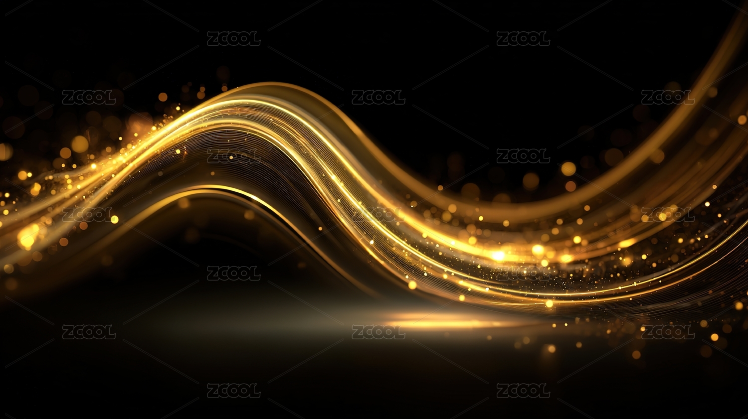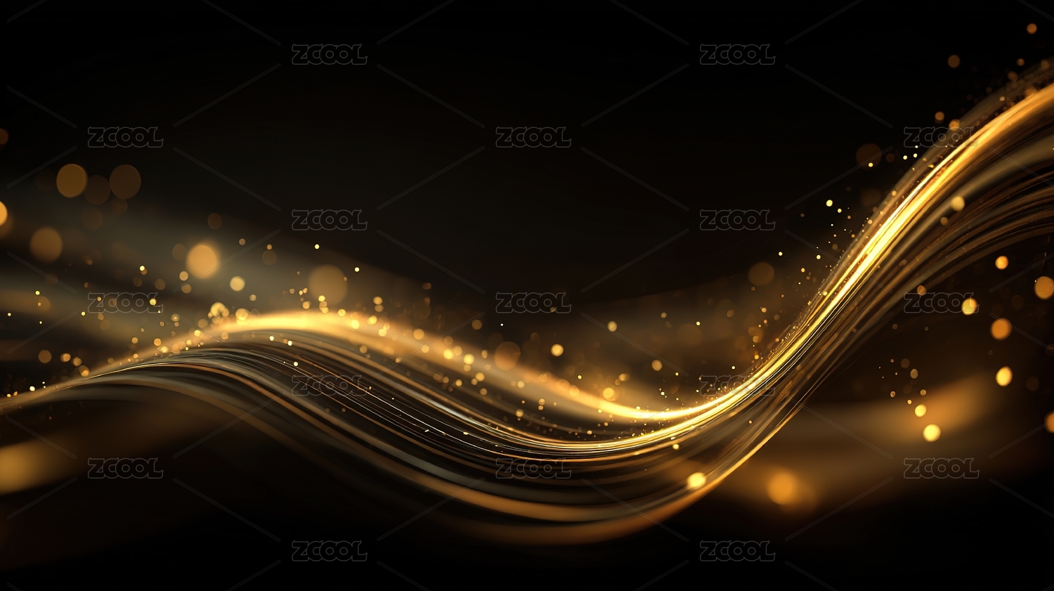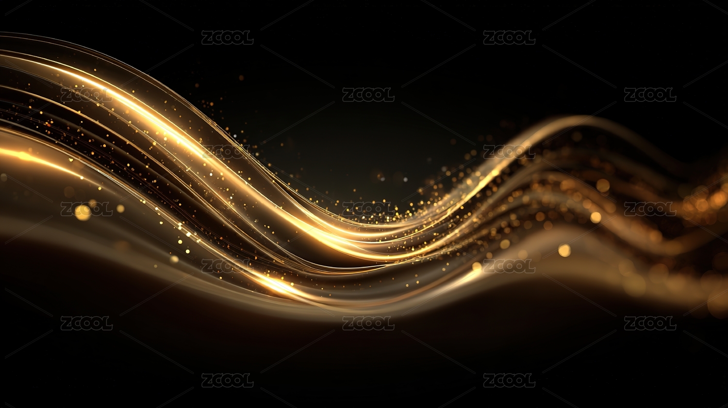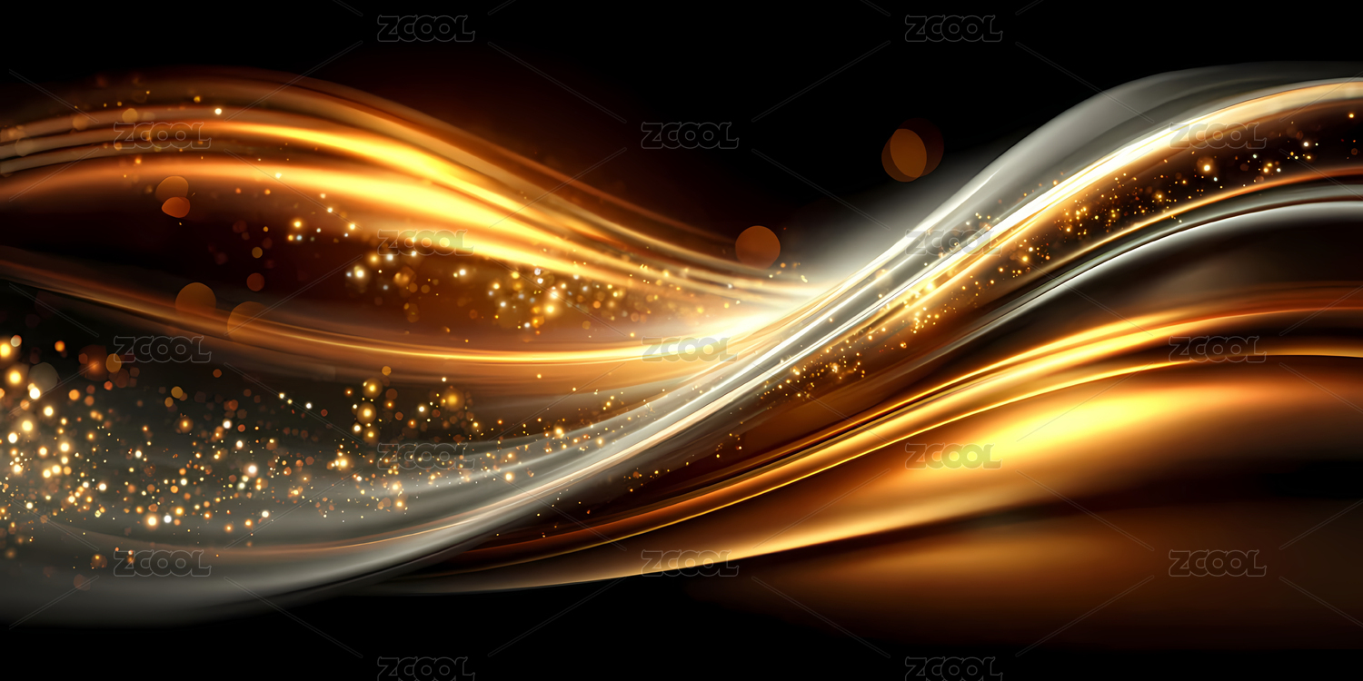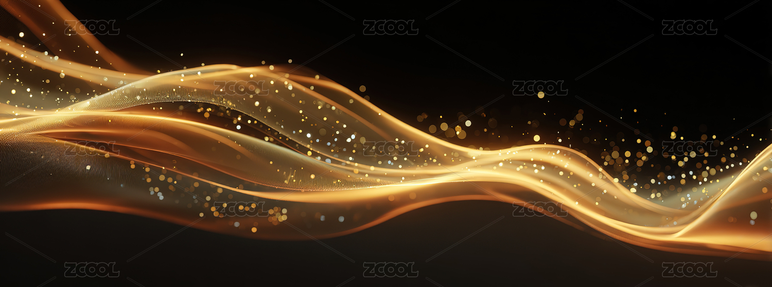 金色波浪与闪耀光点的抽象背景