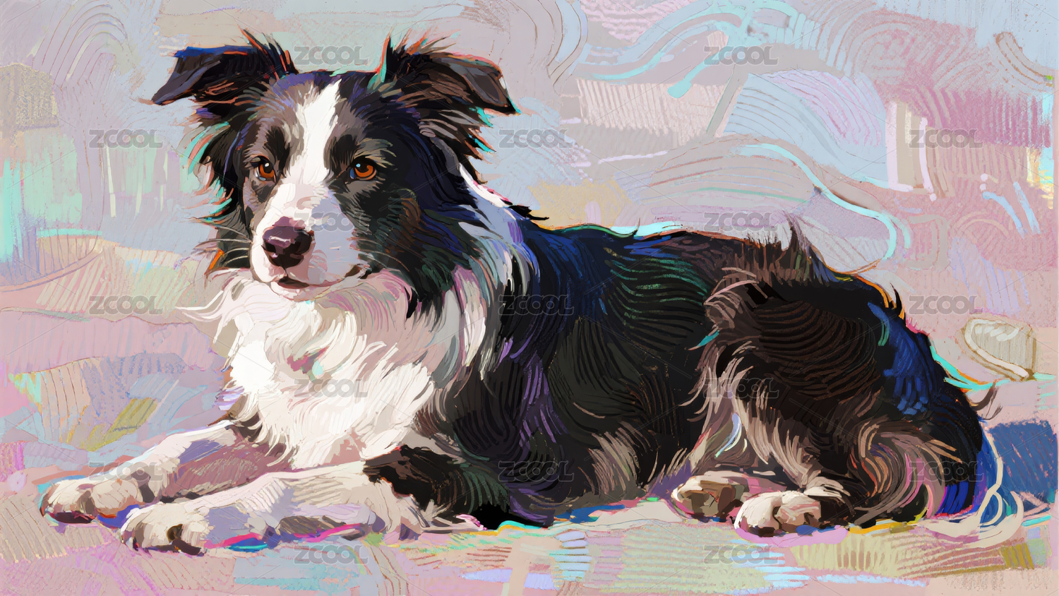 油画风格的小狗插画艺术