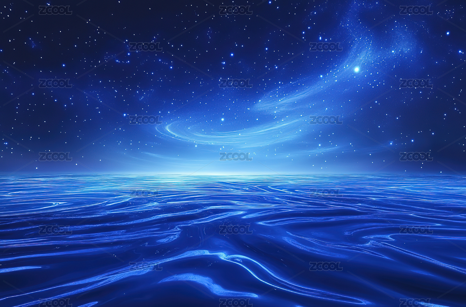 梦幻,流动,波浪,深蓝,星光,夜晚,反射,水面,星空,宇宙