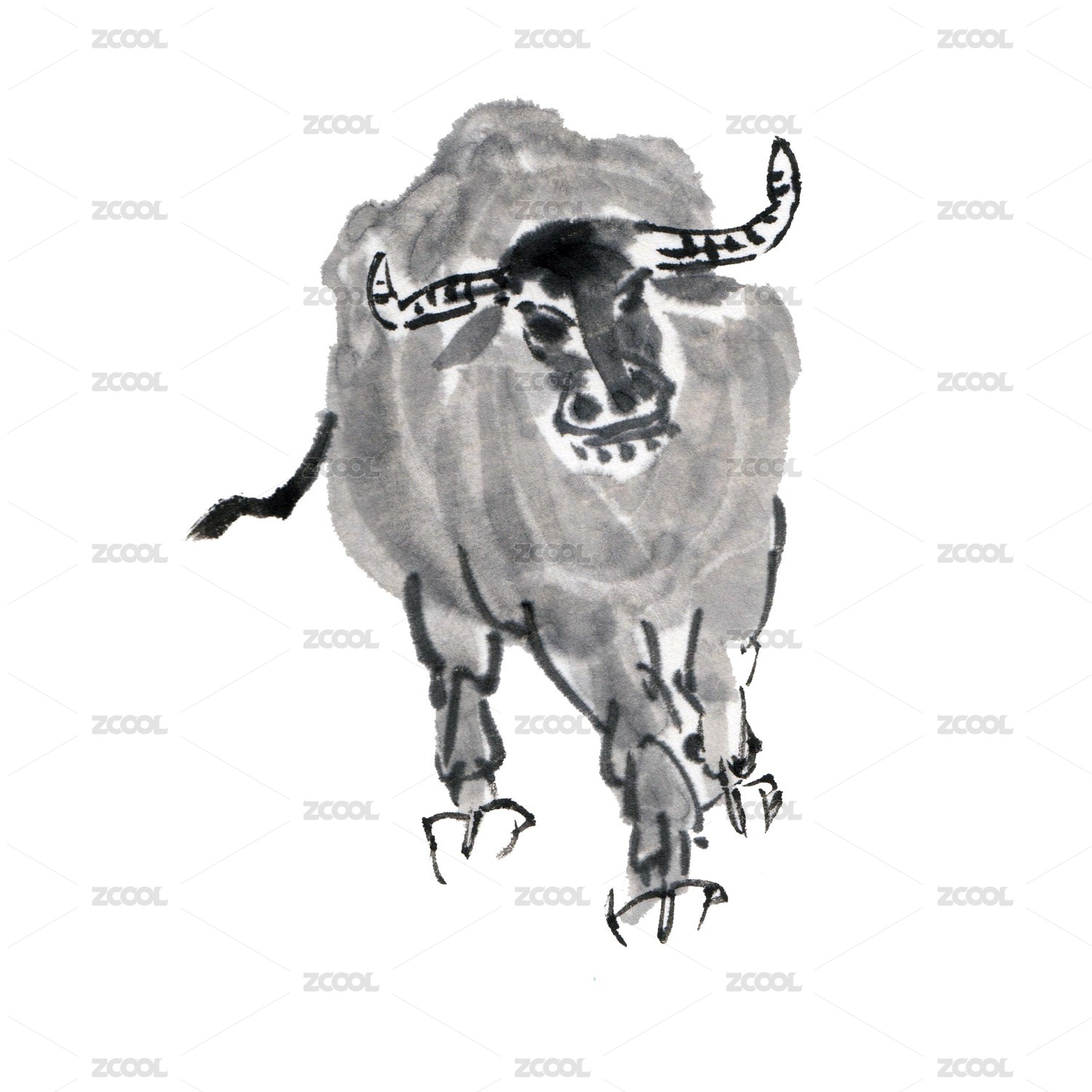 奔跑水墨黑白牛图绘描