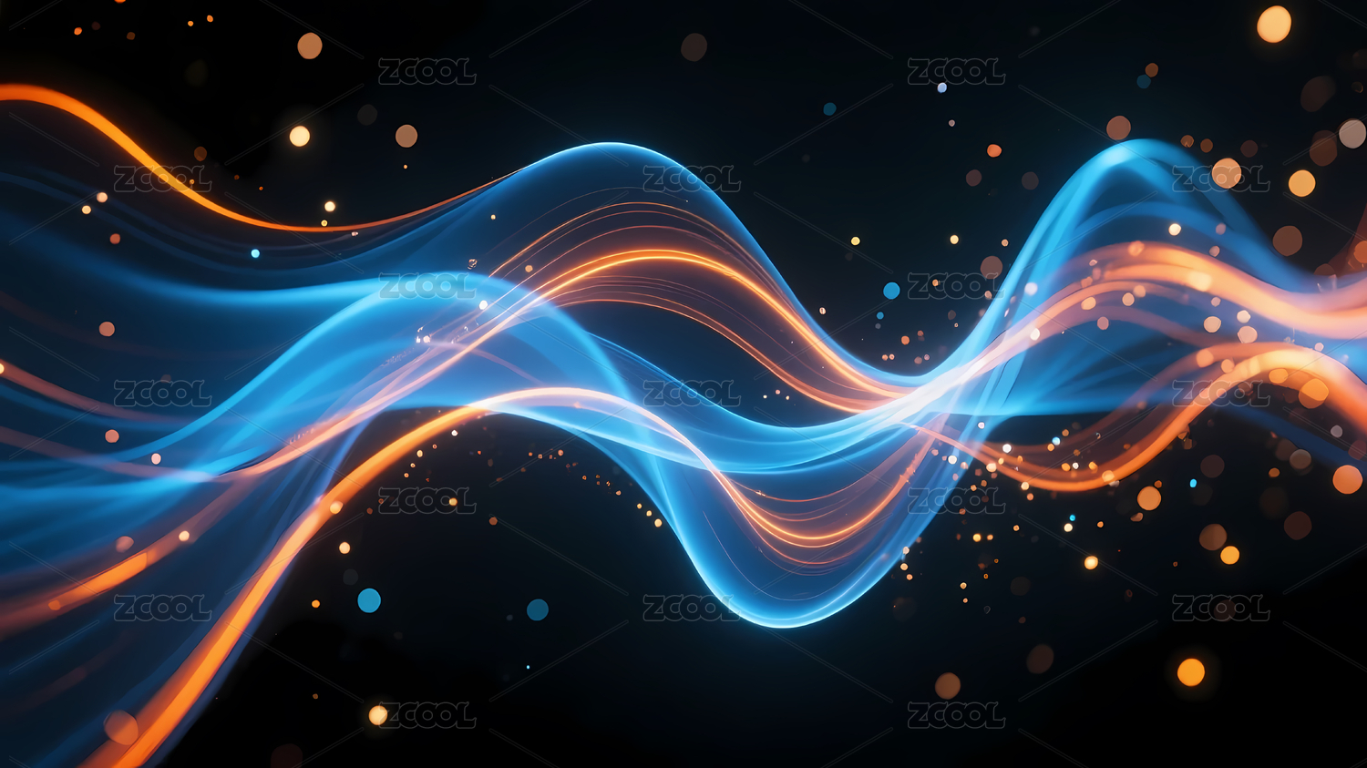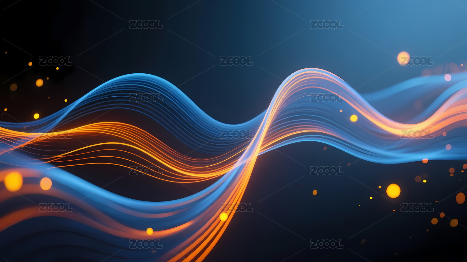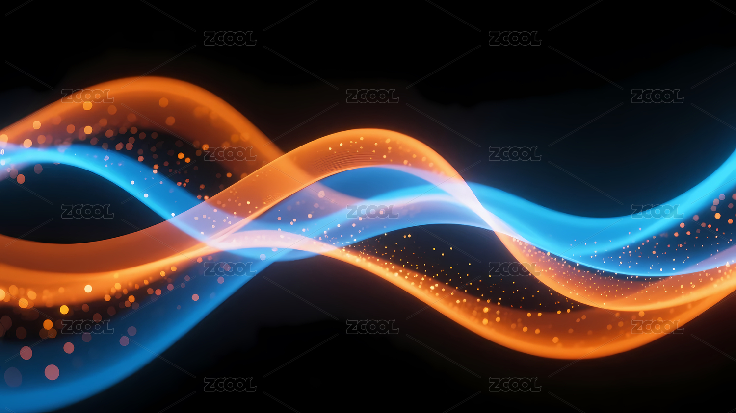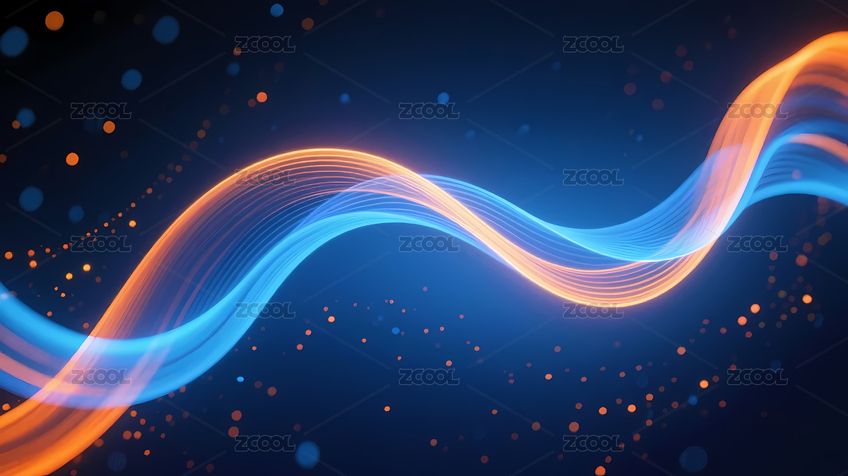 蓝色,动态,视觉,效果,橙色,深蓝,光点,神秘,流动,光带