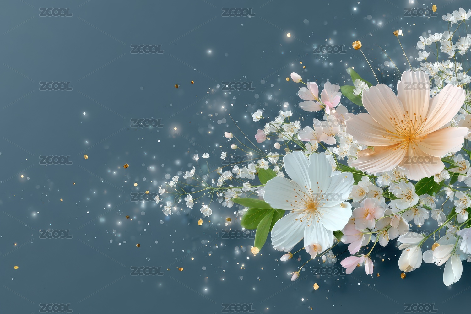 蓝白花朵梦幻背景图