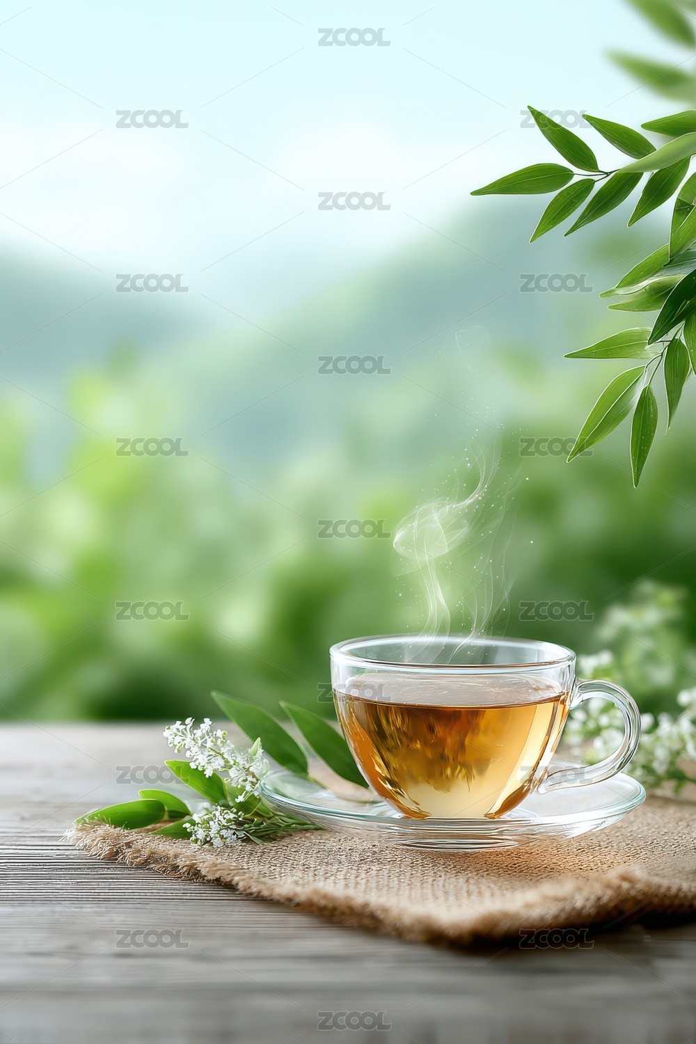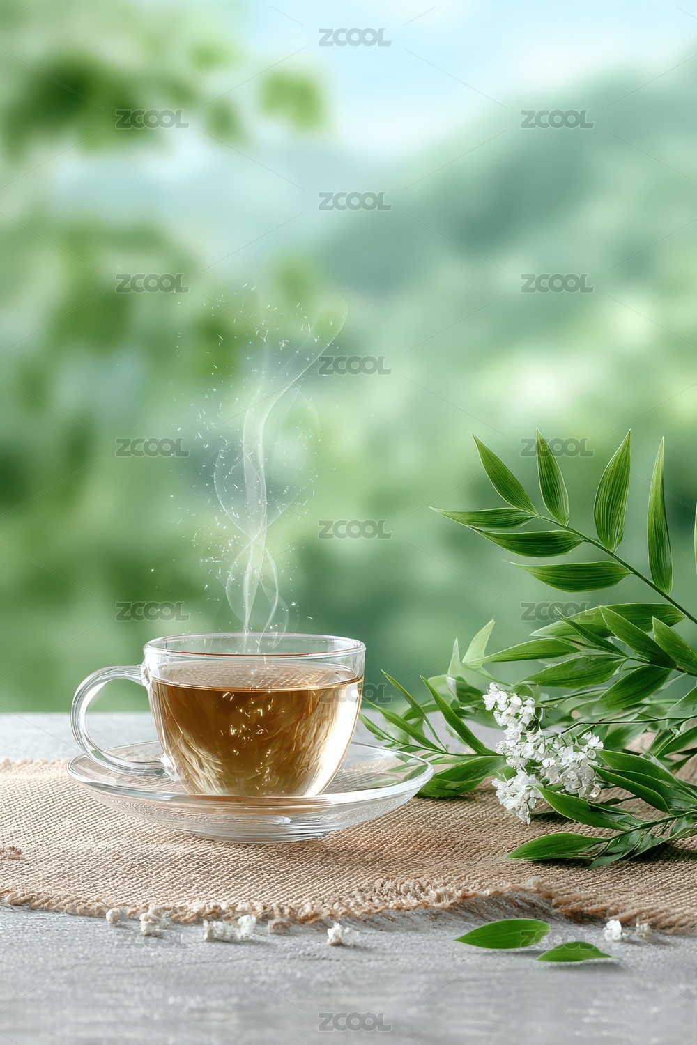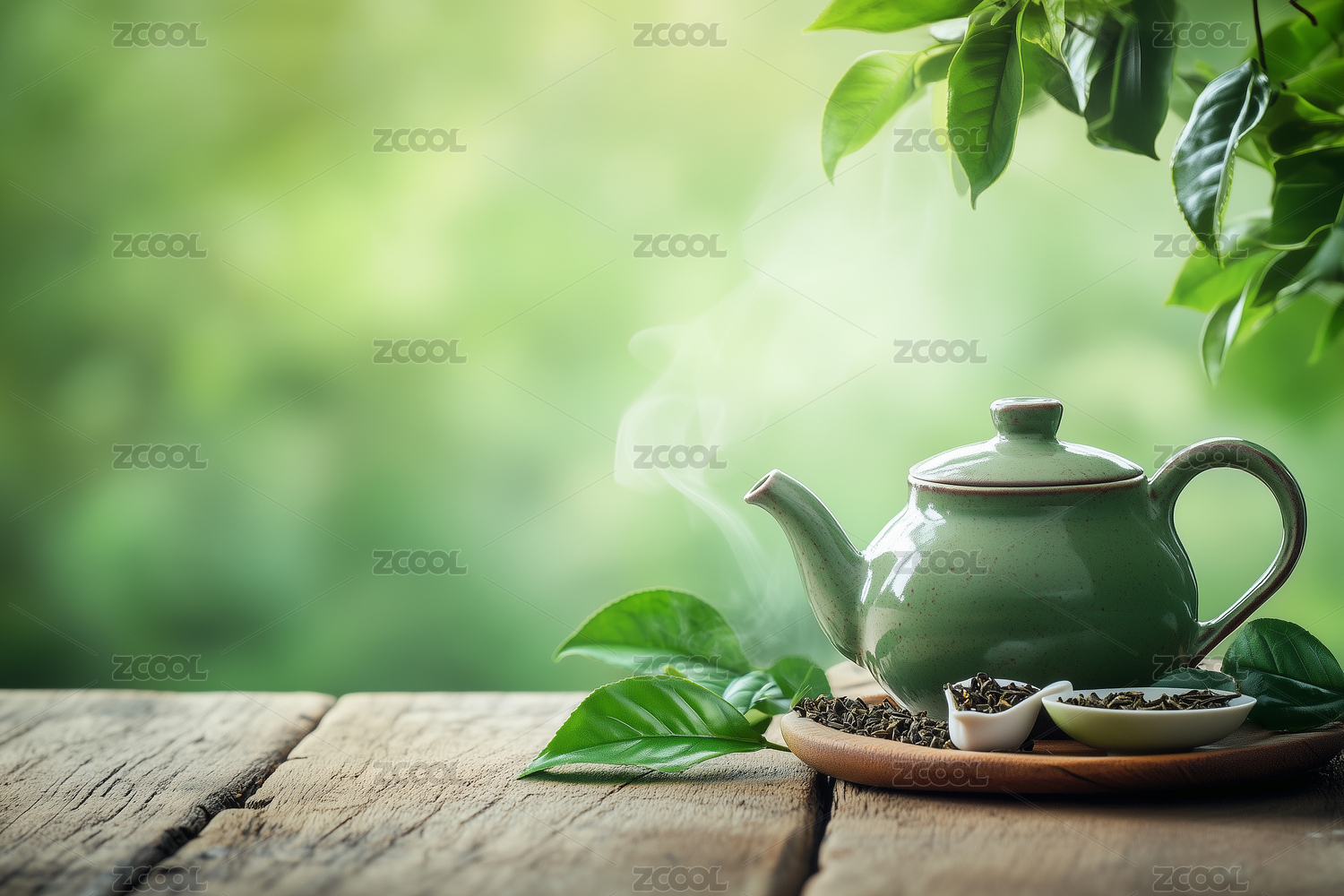 茶壶,热气,绿植,背景,茶杯,热茶,竹垫,石头