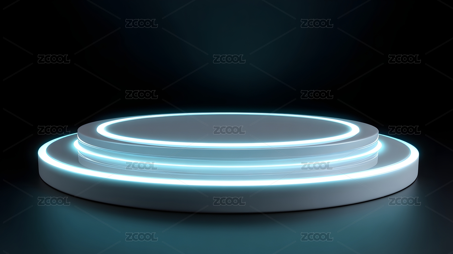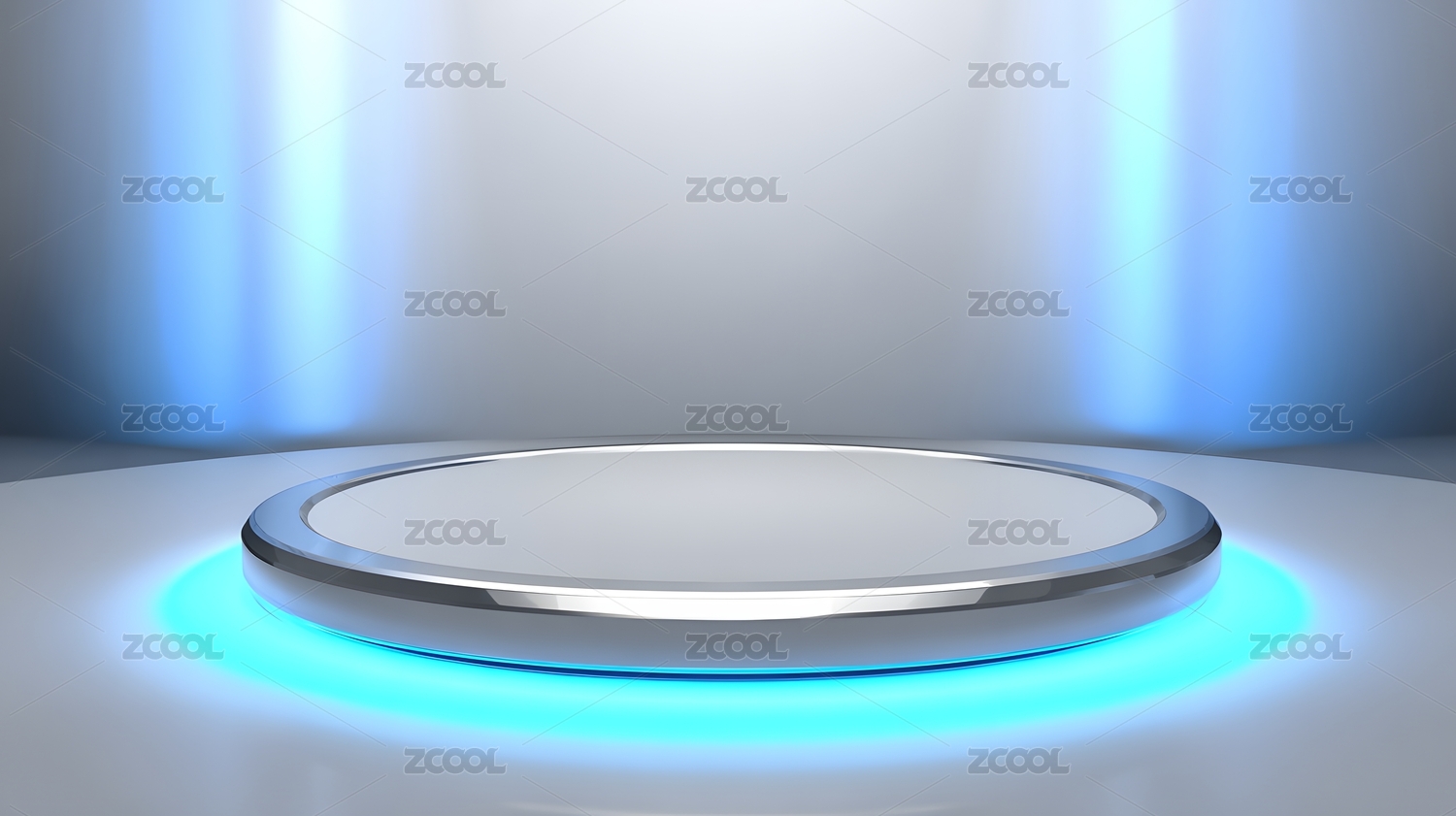 未来,科技,银色,深蓝,金属,渐变,圆形,平台,蓝光,边缘