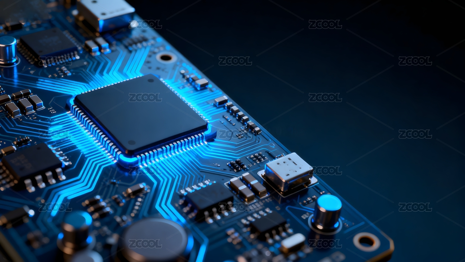 蓝色调电路板与芯片