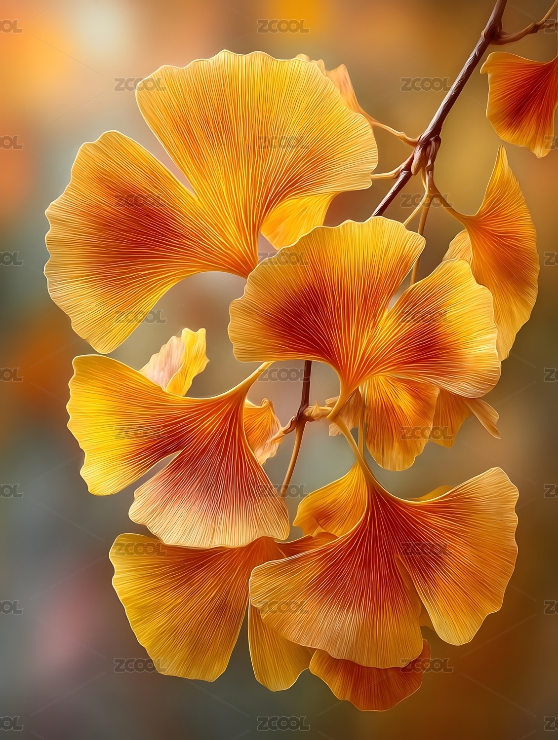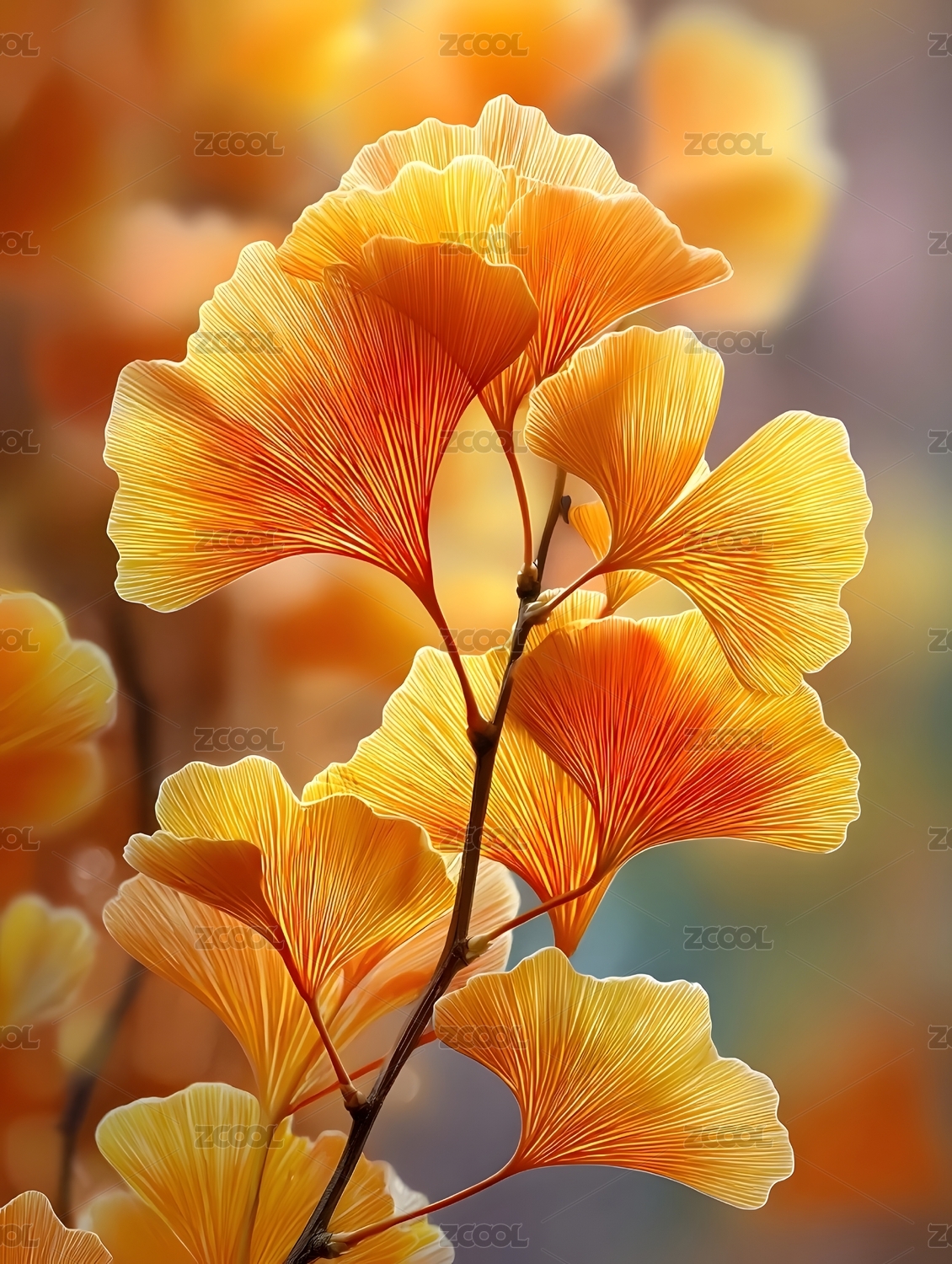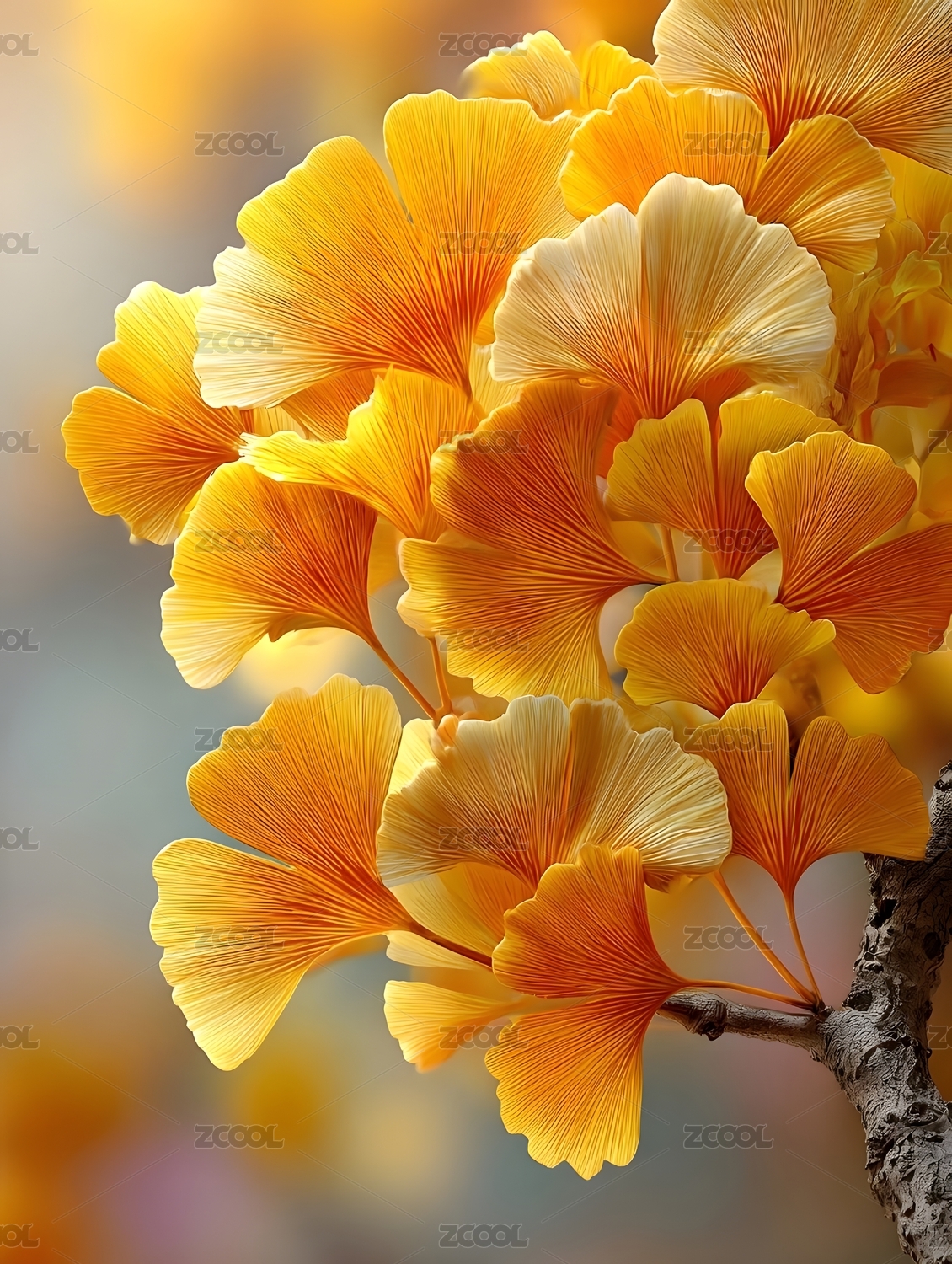 银杏叶秋日色彩特写