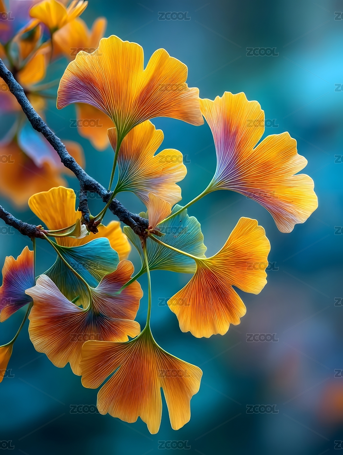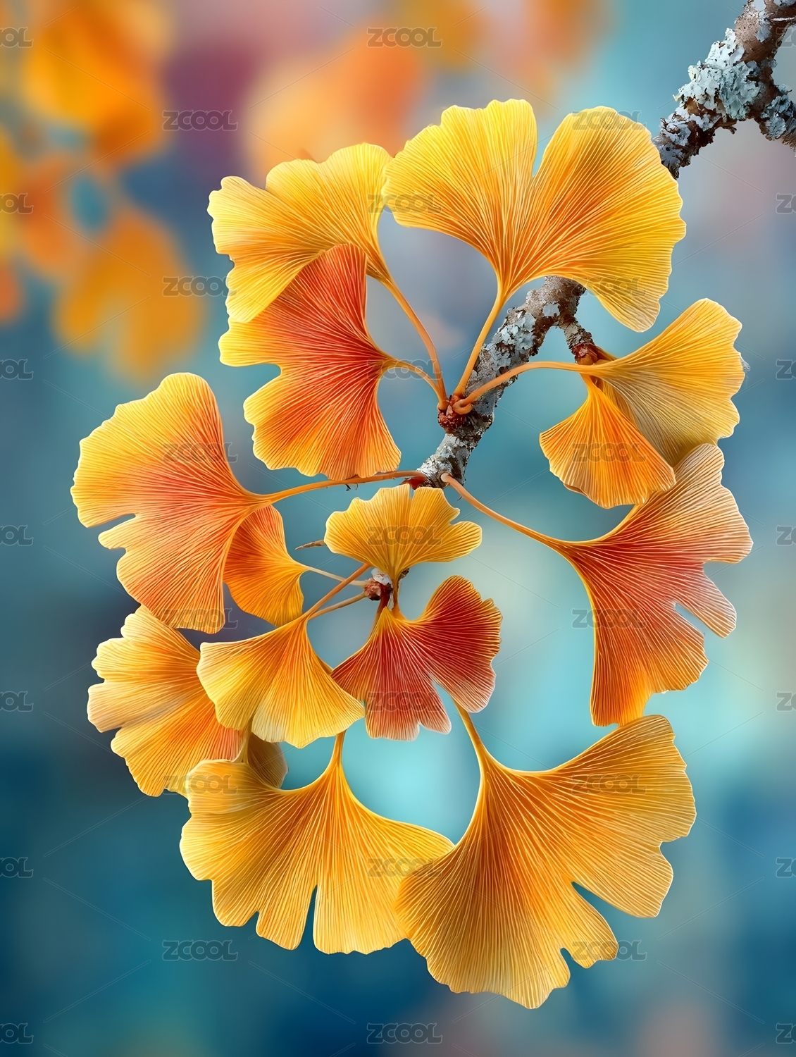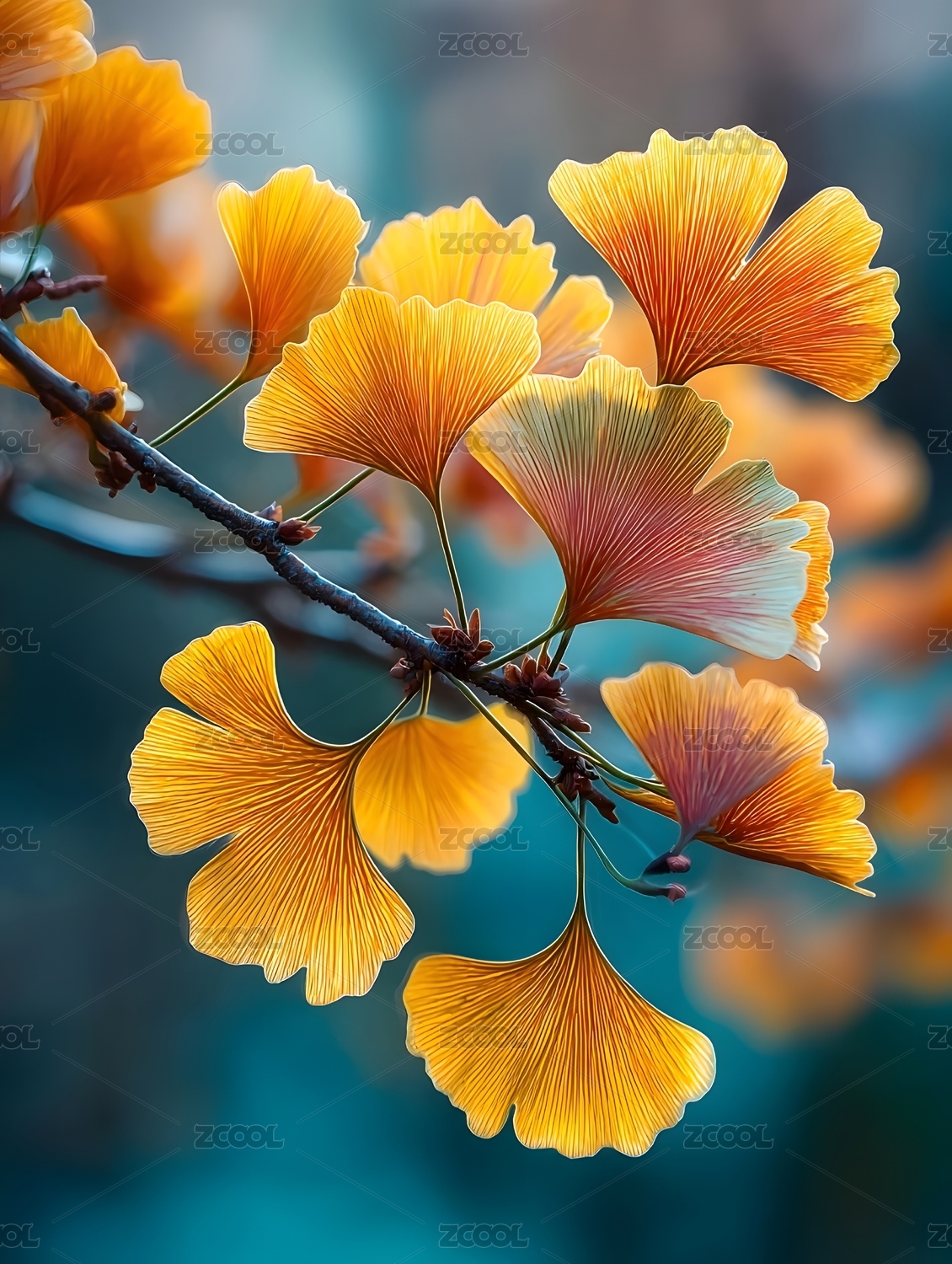 银杏叶秋日色彩特写