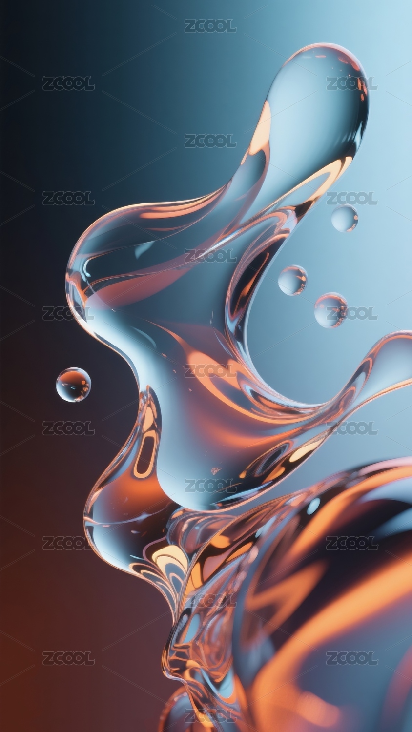 液体,水,水花,流动,背景,光影,三维,空间,白色,蓝橙色