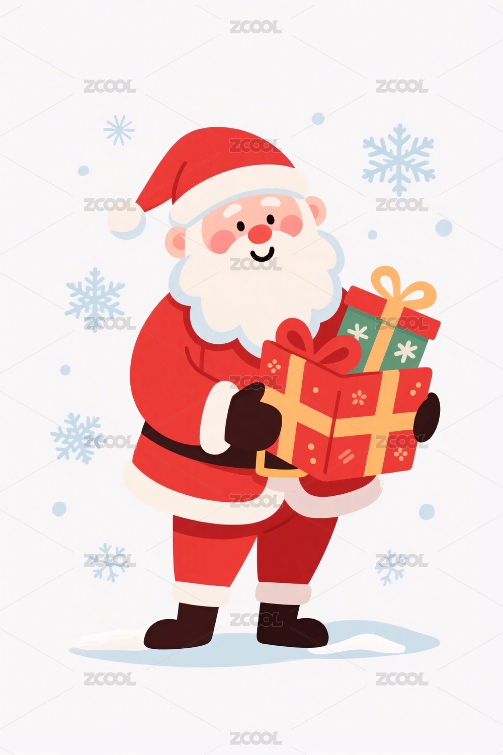 圣诞老人,礼物,插画,卡通,人物,节日,红色,绿色,戴眼镜,圣诞帽