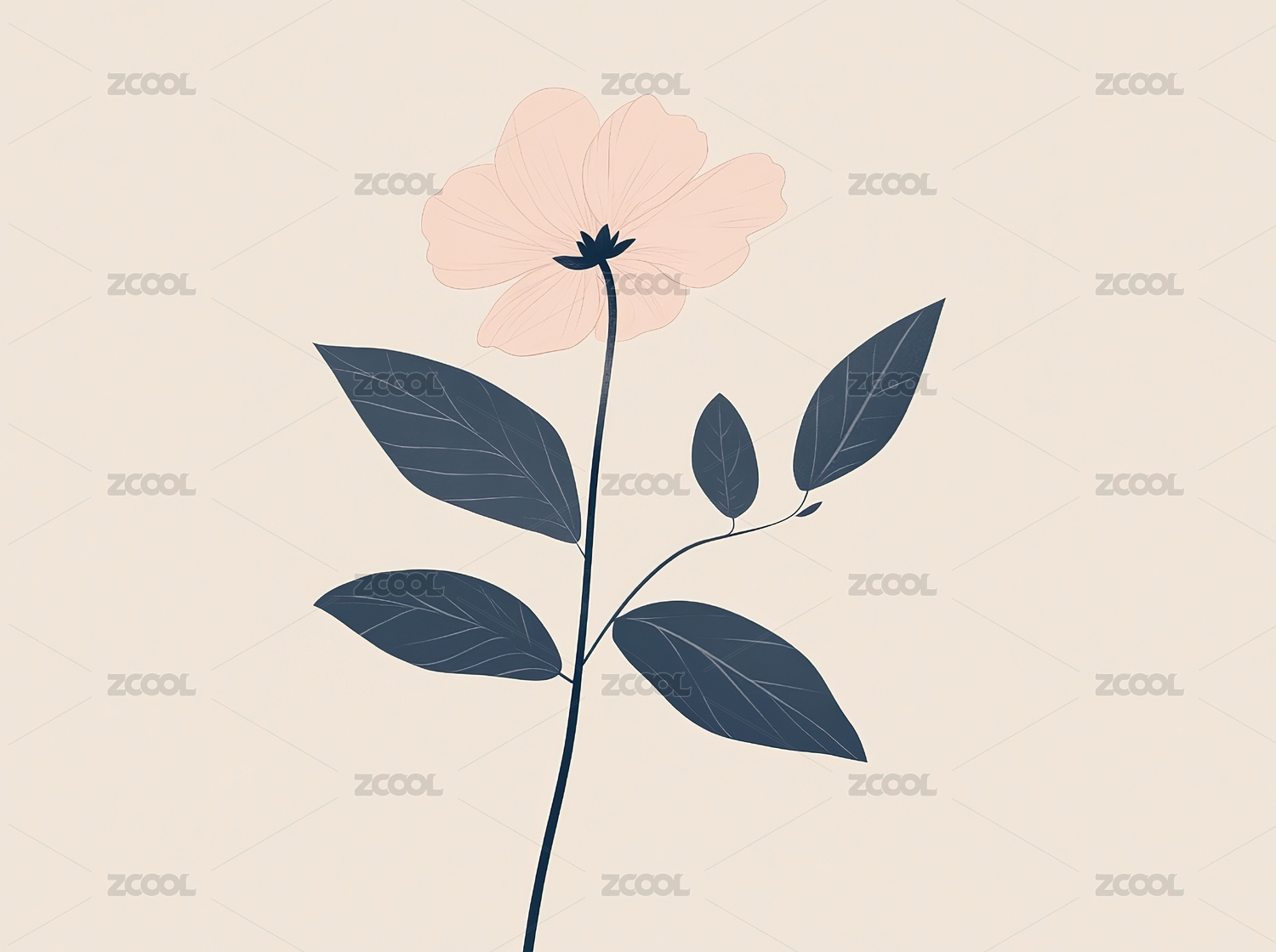 简约单色花朵插画