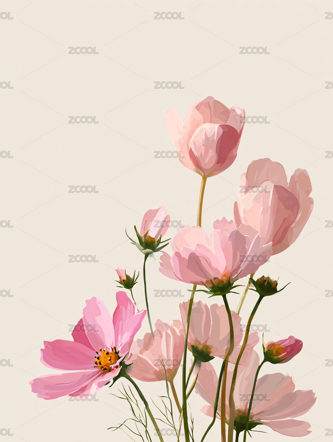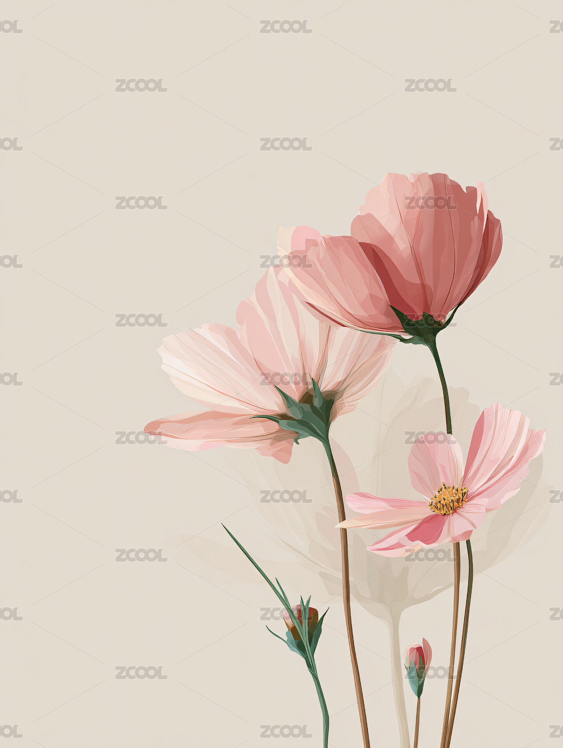 粉色花朵的简约插画