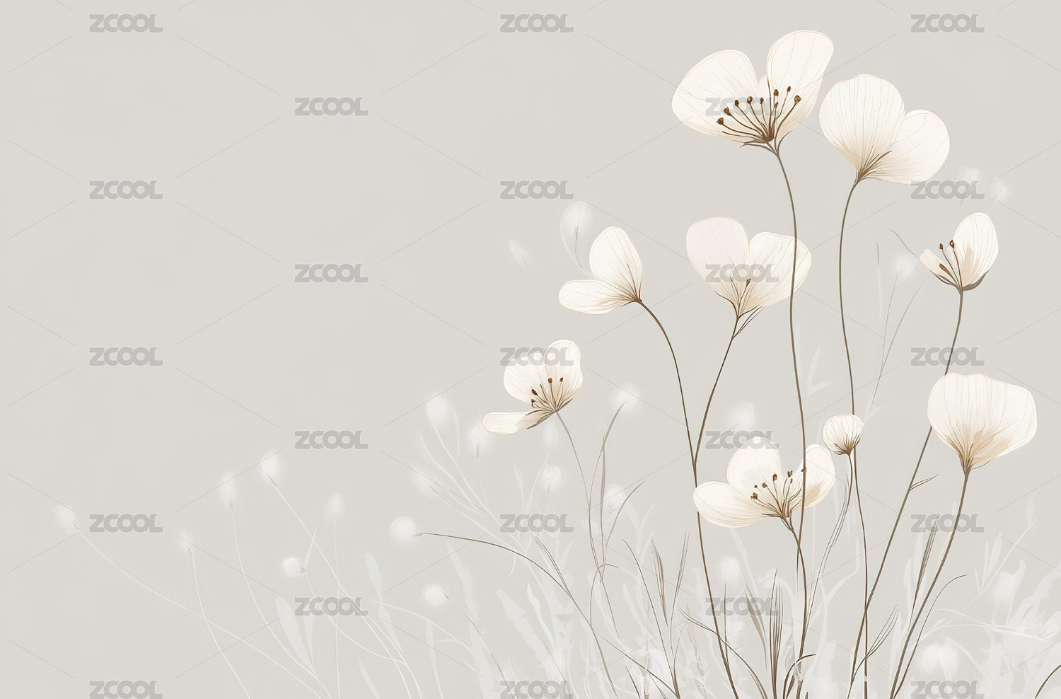 简约白色花卉插画