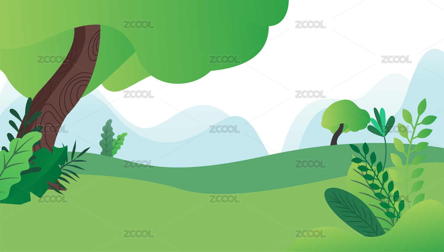 卡通绿树自然插画