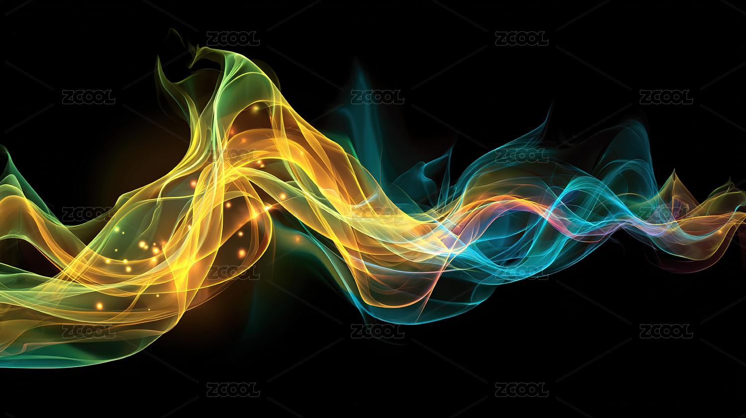 轻盈飘渺的绿色烟雾,在暗色背景中流淌
