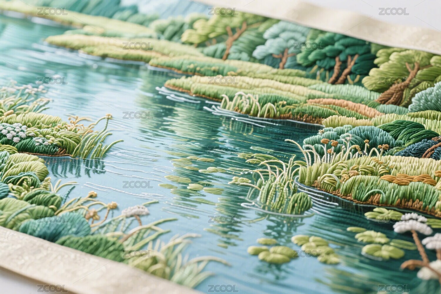 湿地刺绣风景画