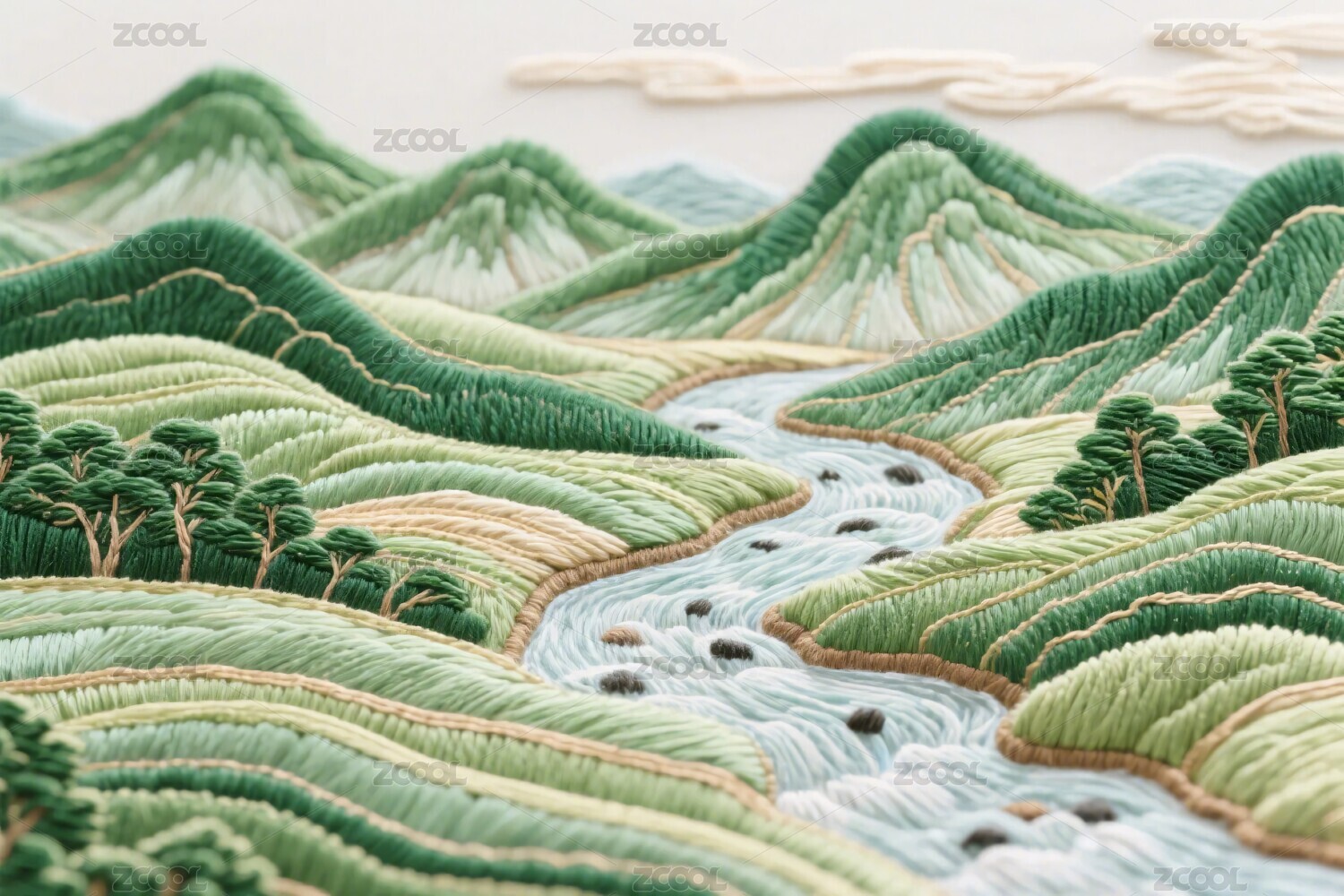 自然风景刺绣插画