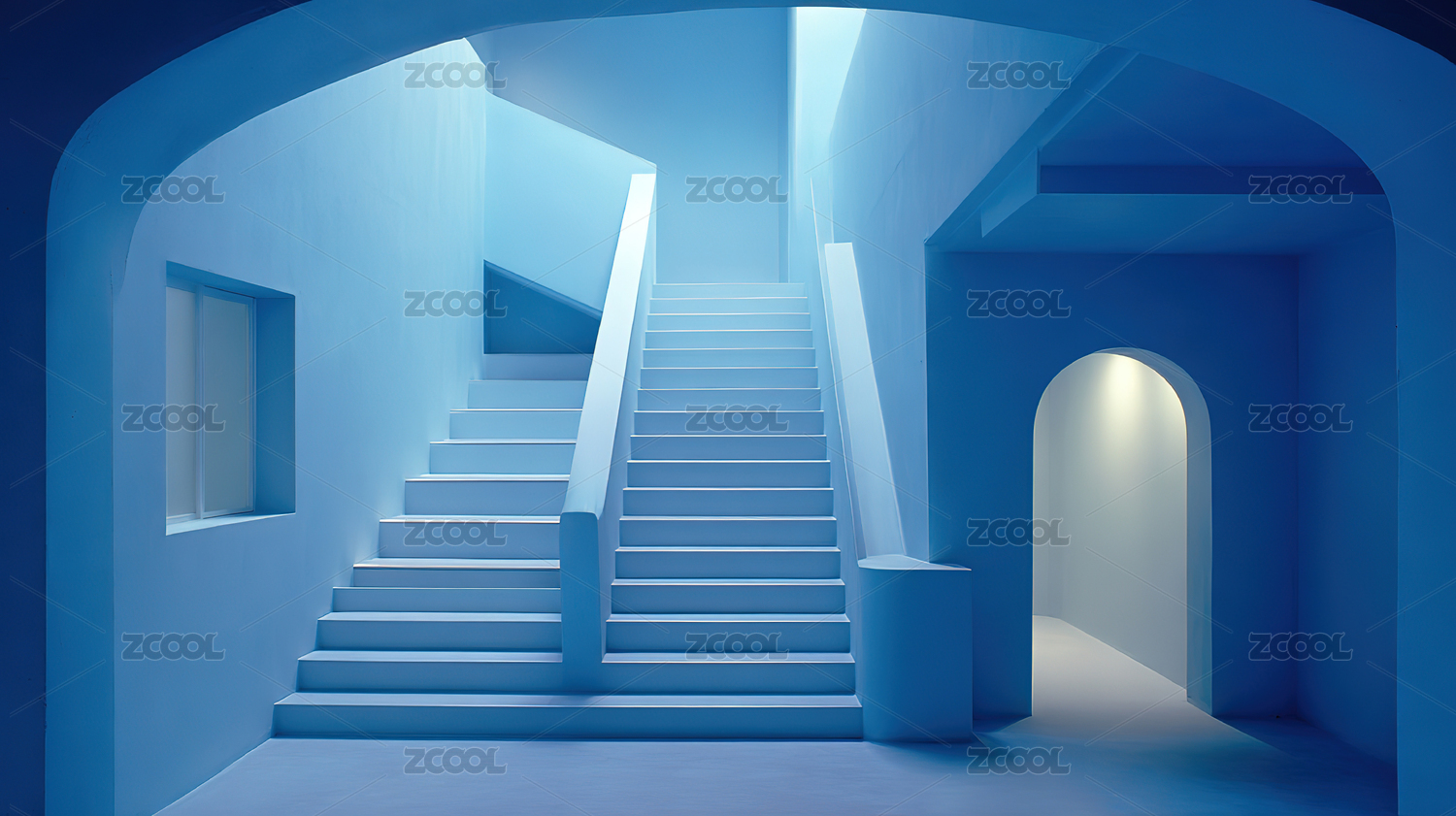 蓝色,现代,室内,设计,空间,地面,光影,简洁,抽象,艺术