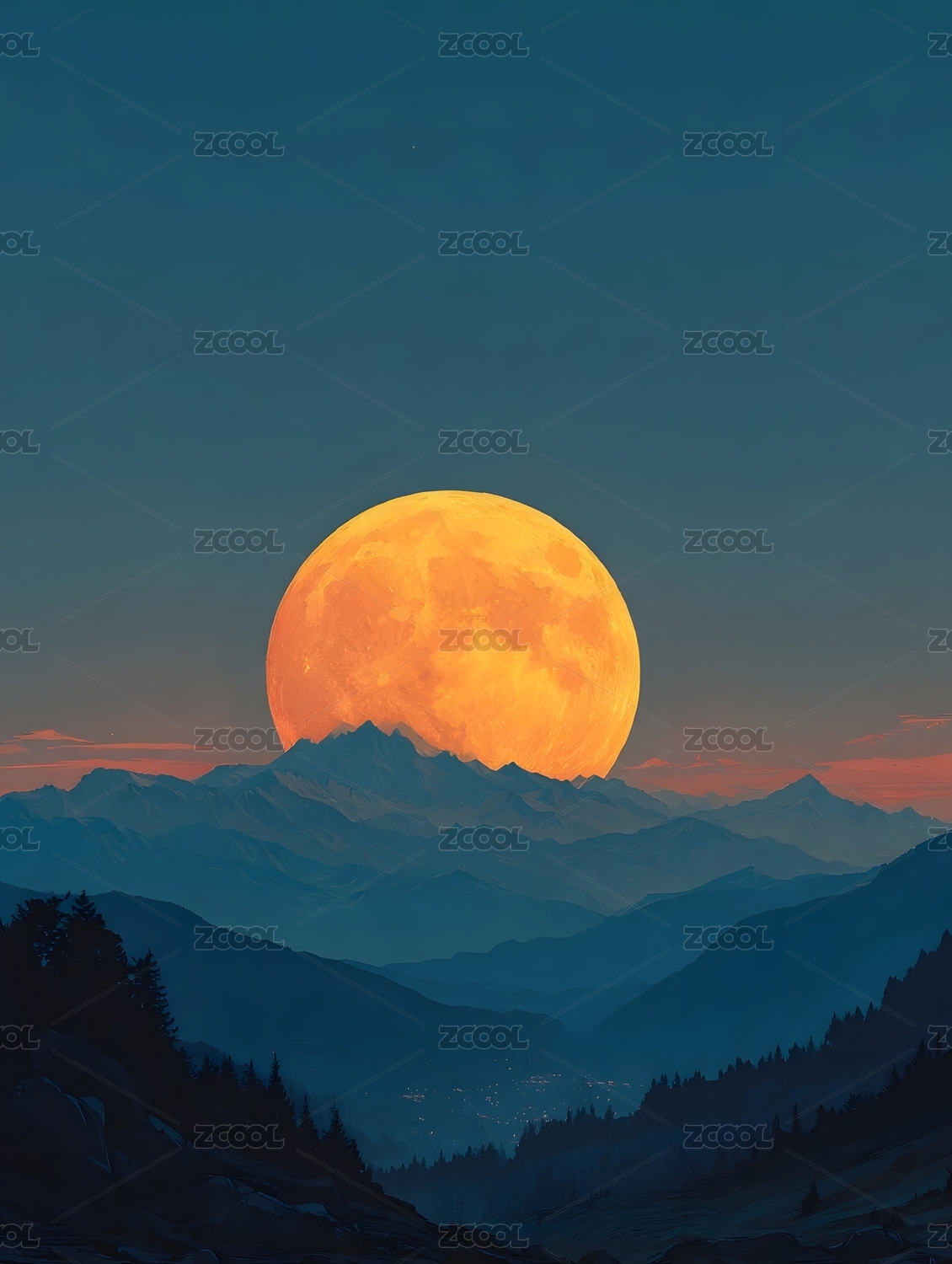 天空,自然,月亮,夜空,月球,山峦,山脉,夜晚,月光,黑暗
