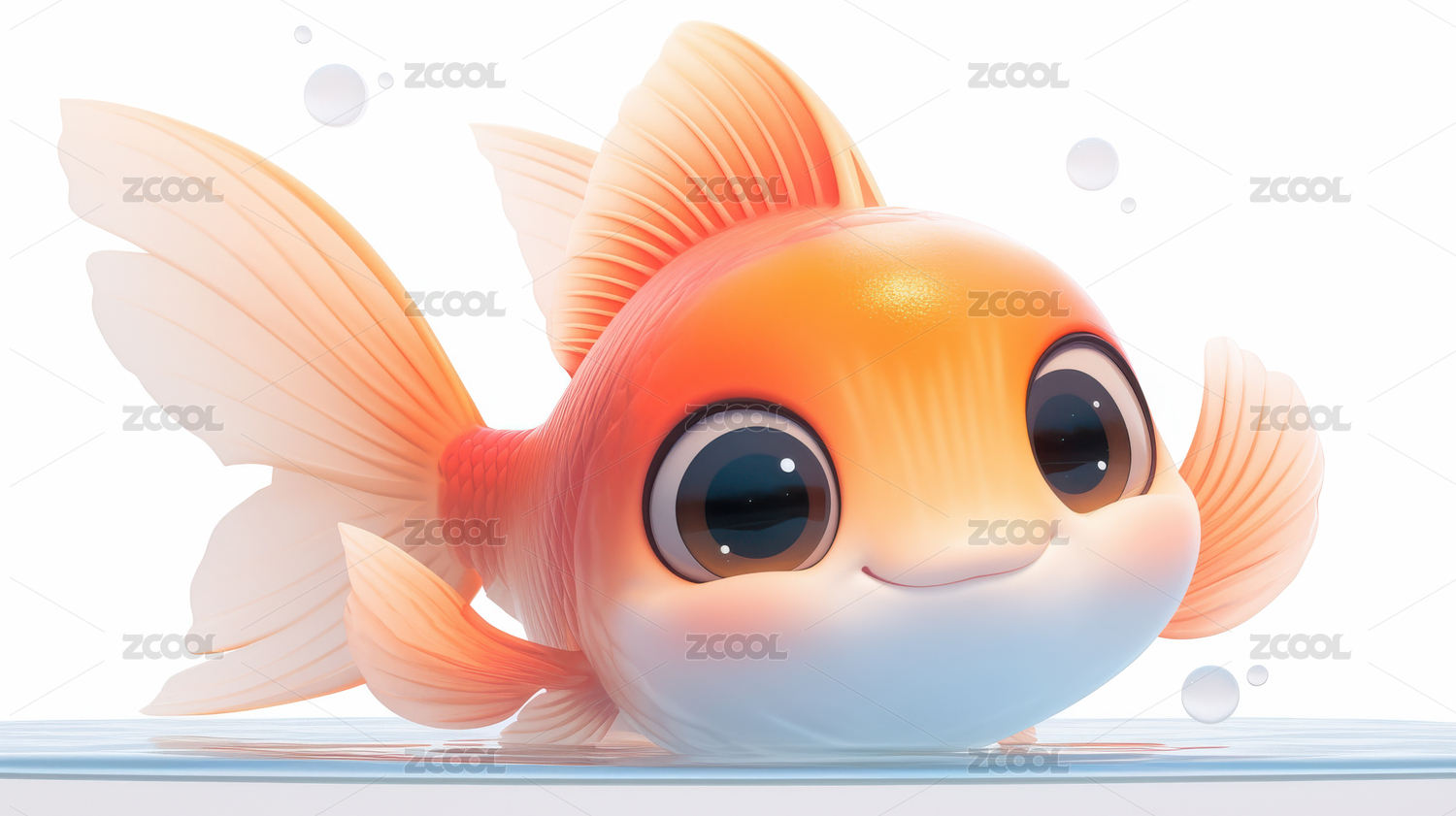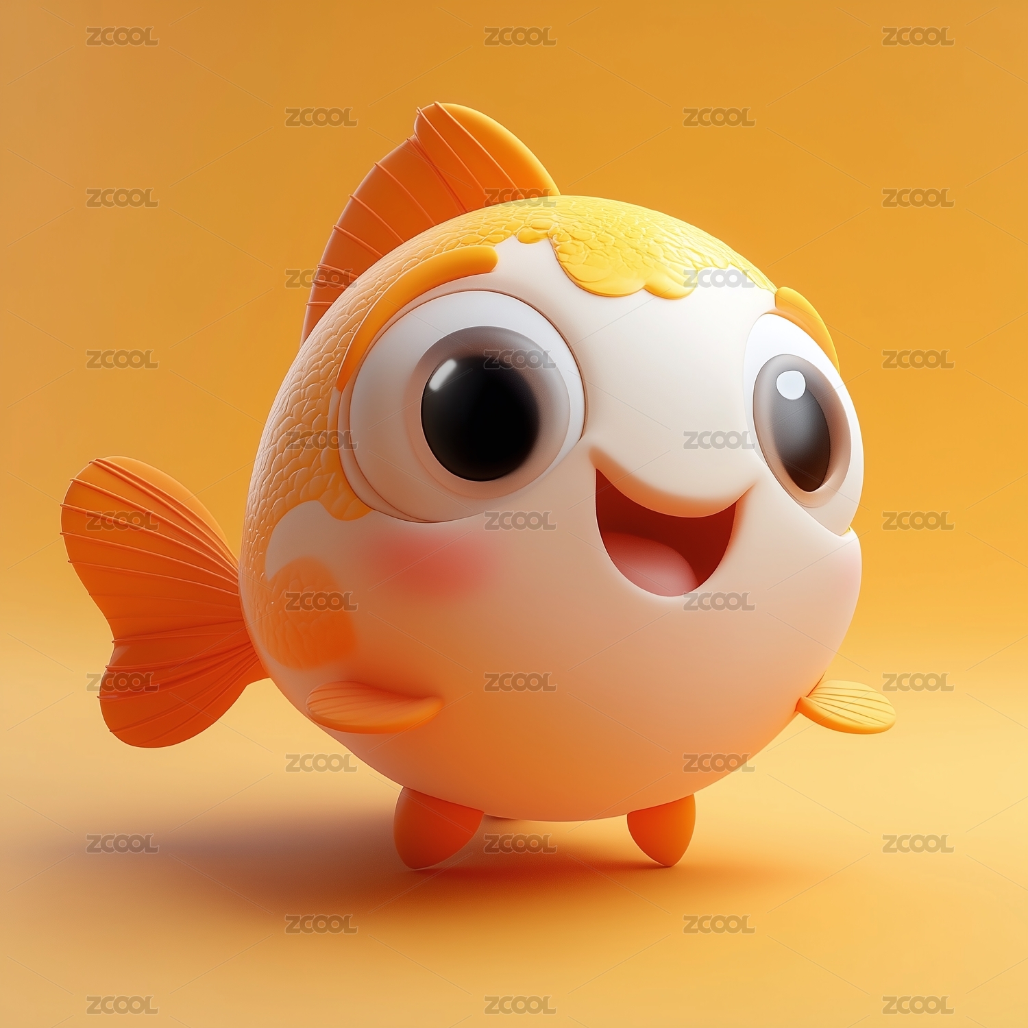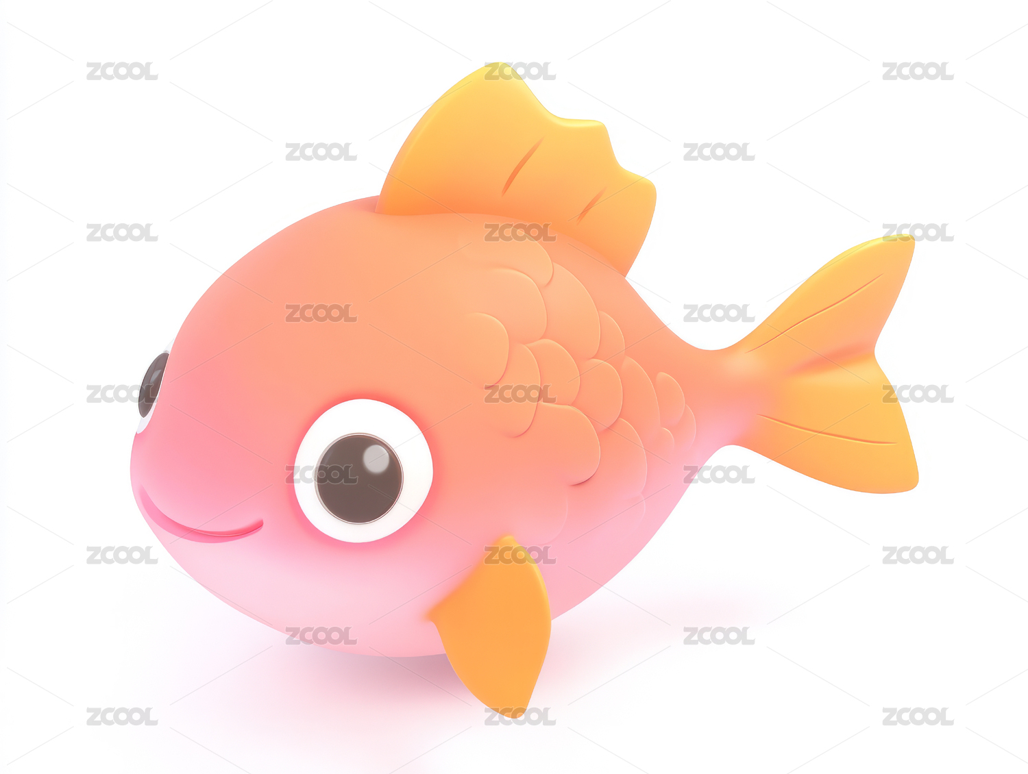 可爱的卡通金鱼3D渲染图