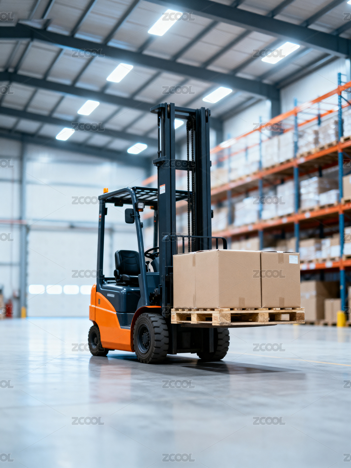 仓库内叉车搬运货物场景
