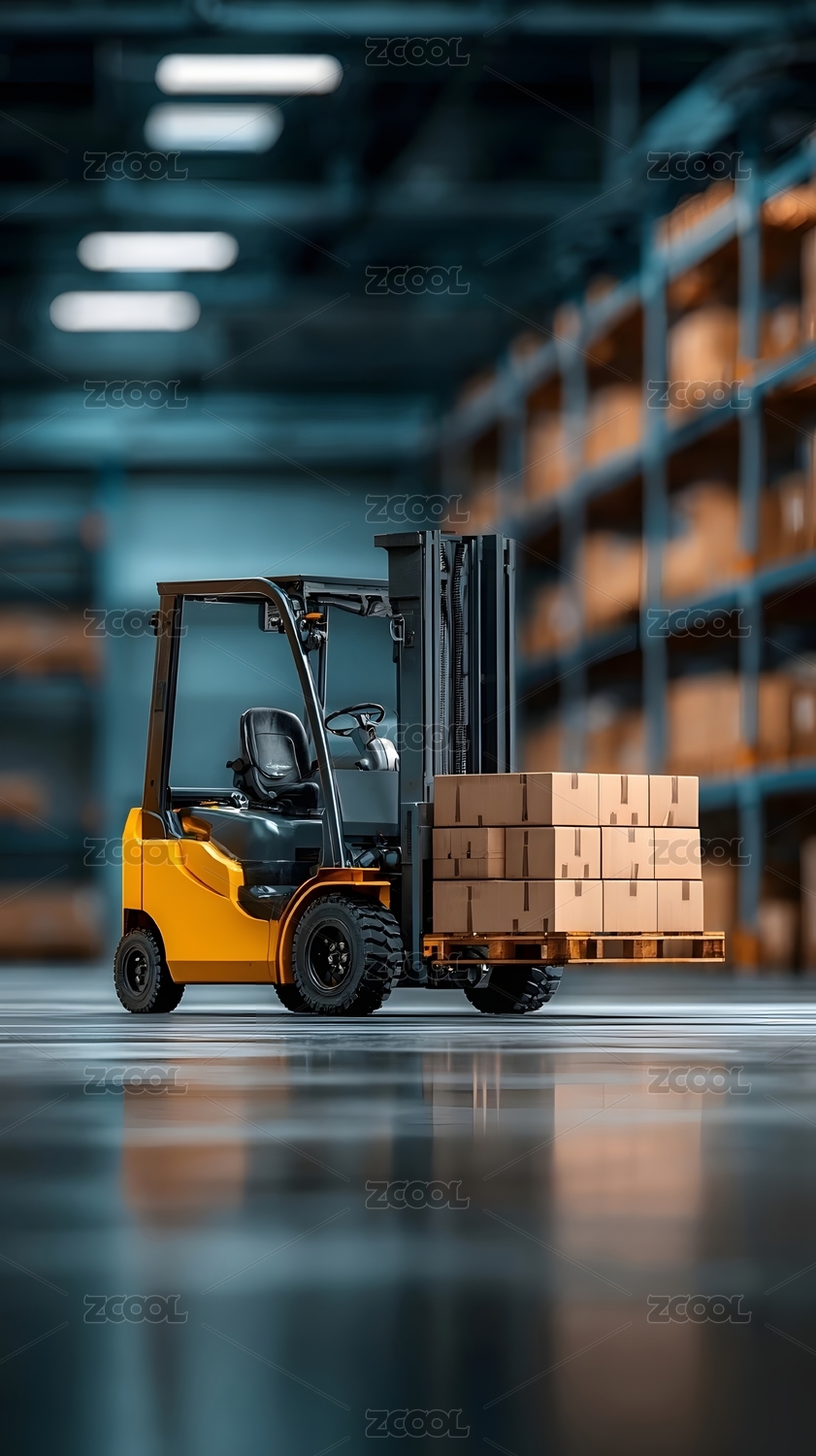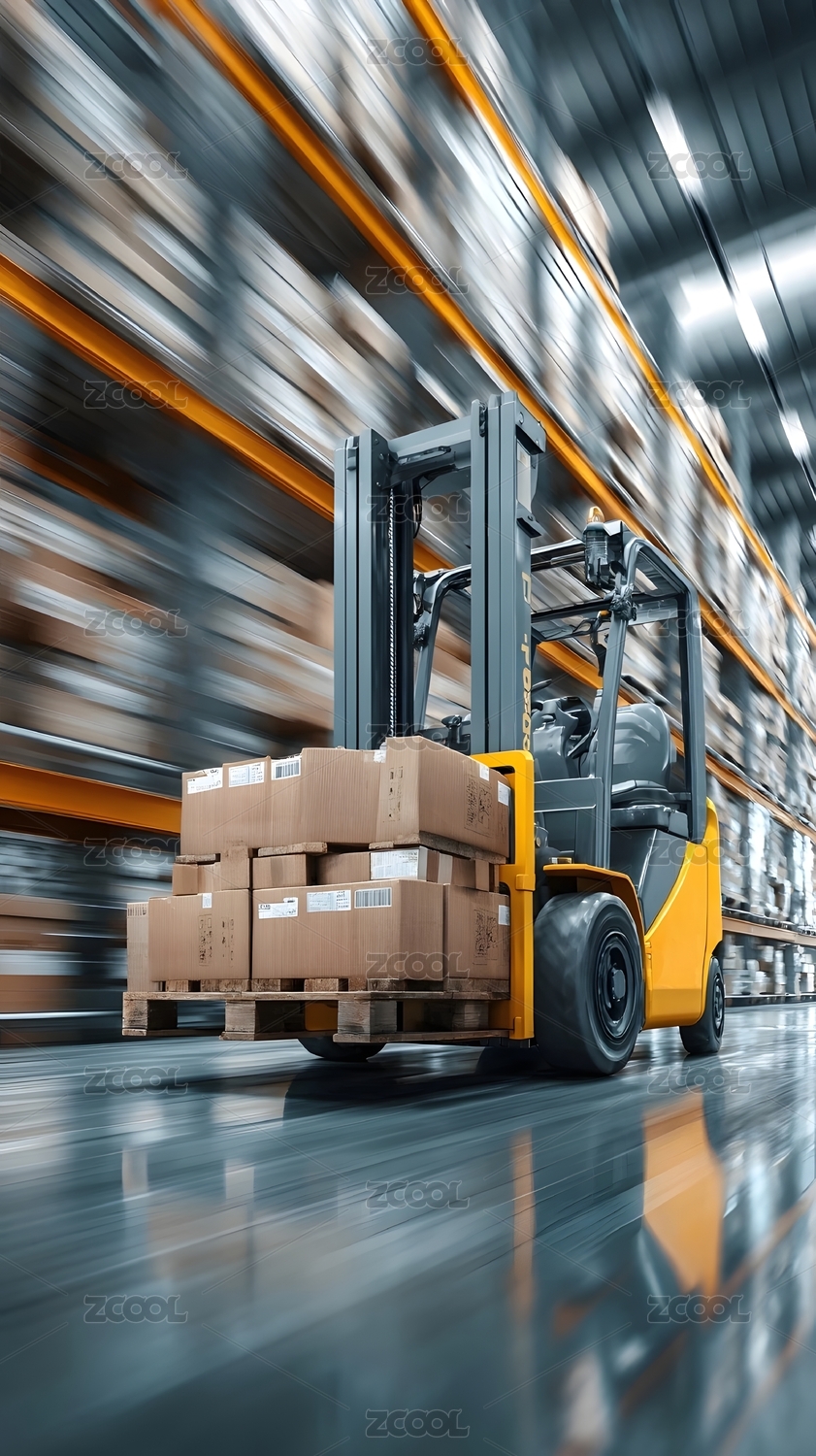 仓库叉车搬运货物场景
