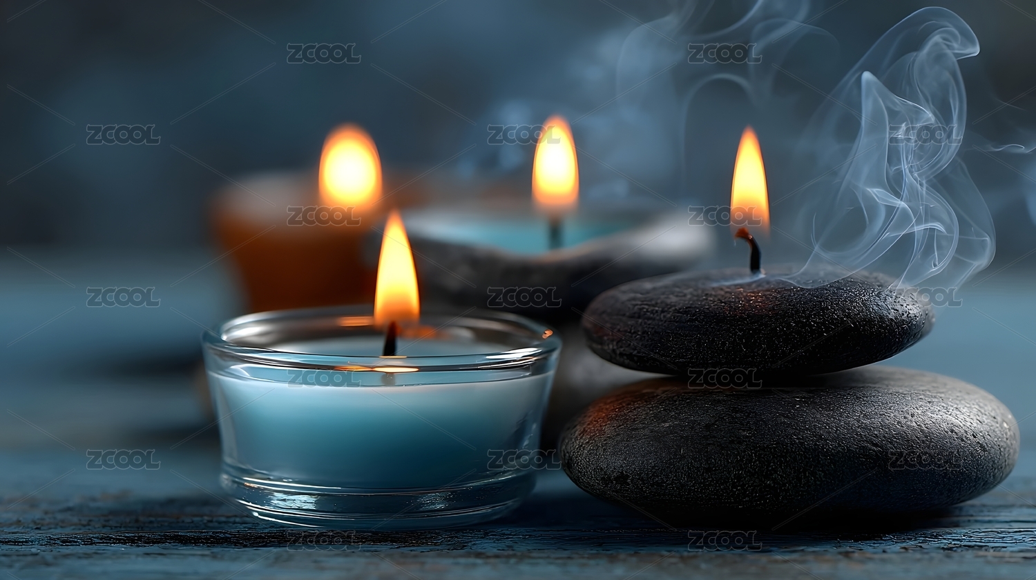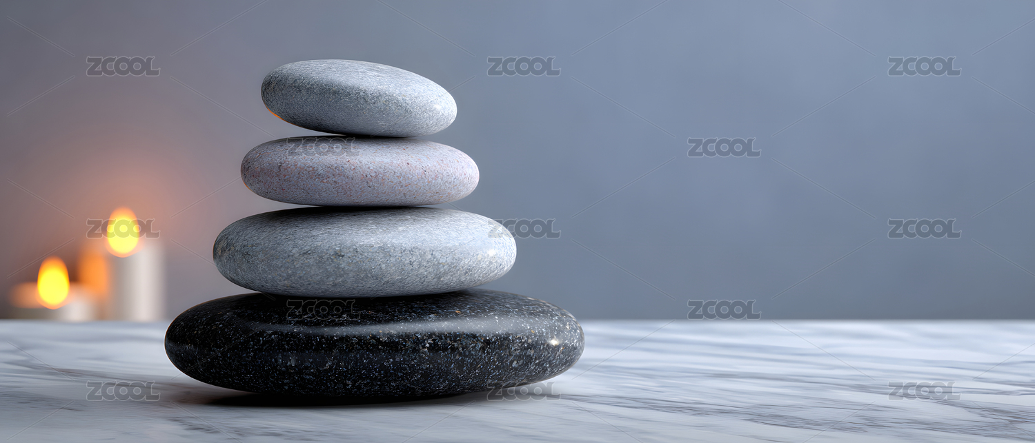 SPA按摩石头堆叠香气蜡烛冥想放松背景