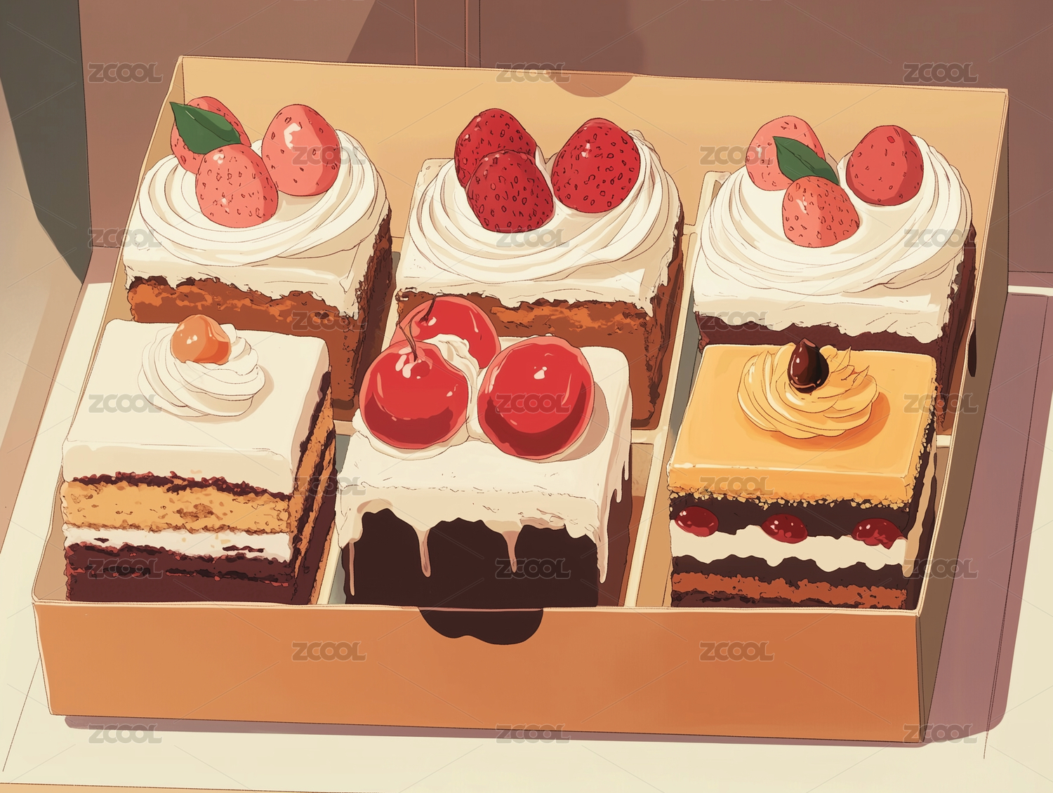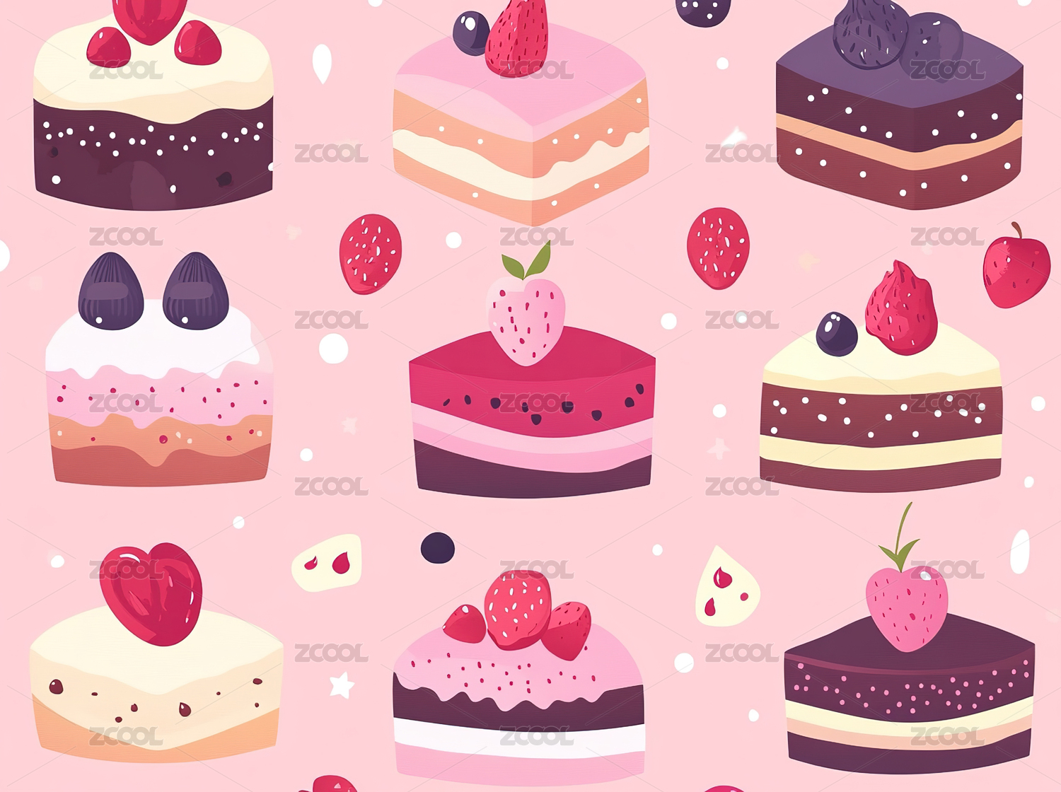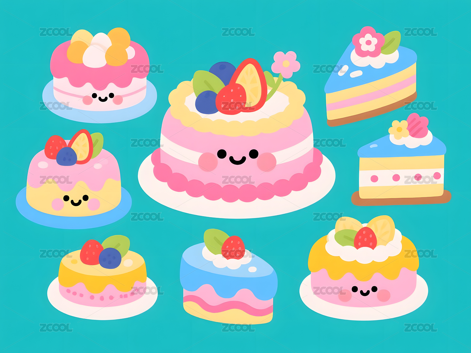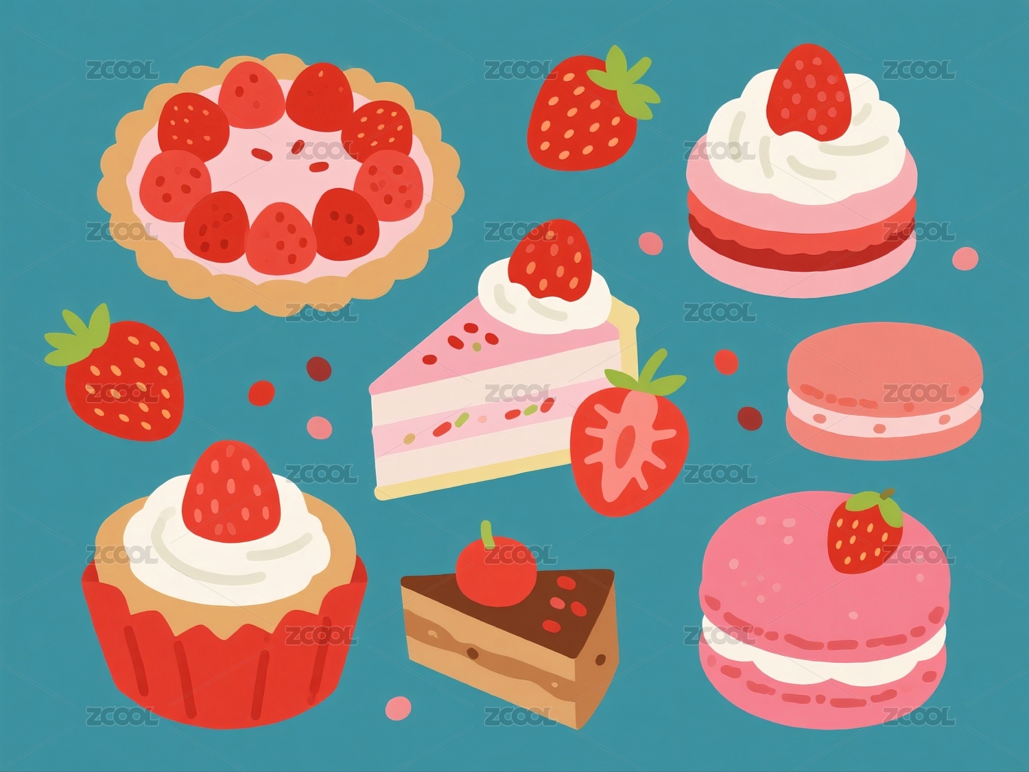 甜点,蛋糕,水果,插画,卡通,美食,甜品,模板,糖霜,奶油