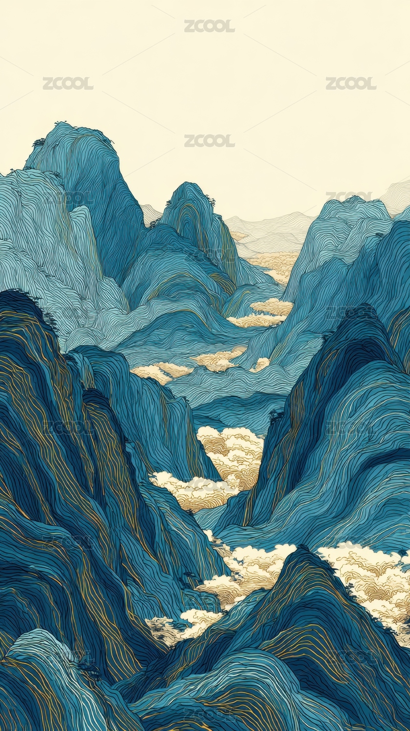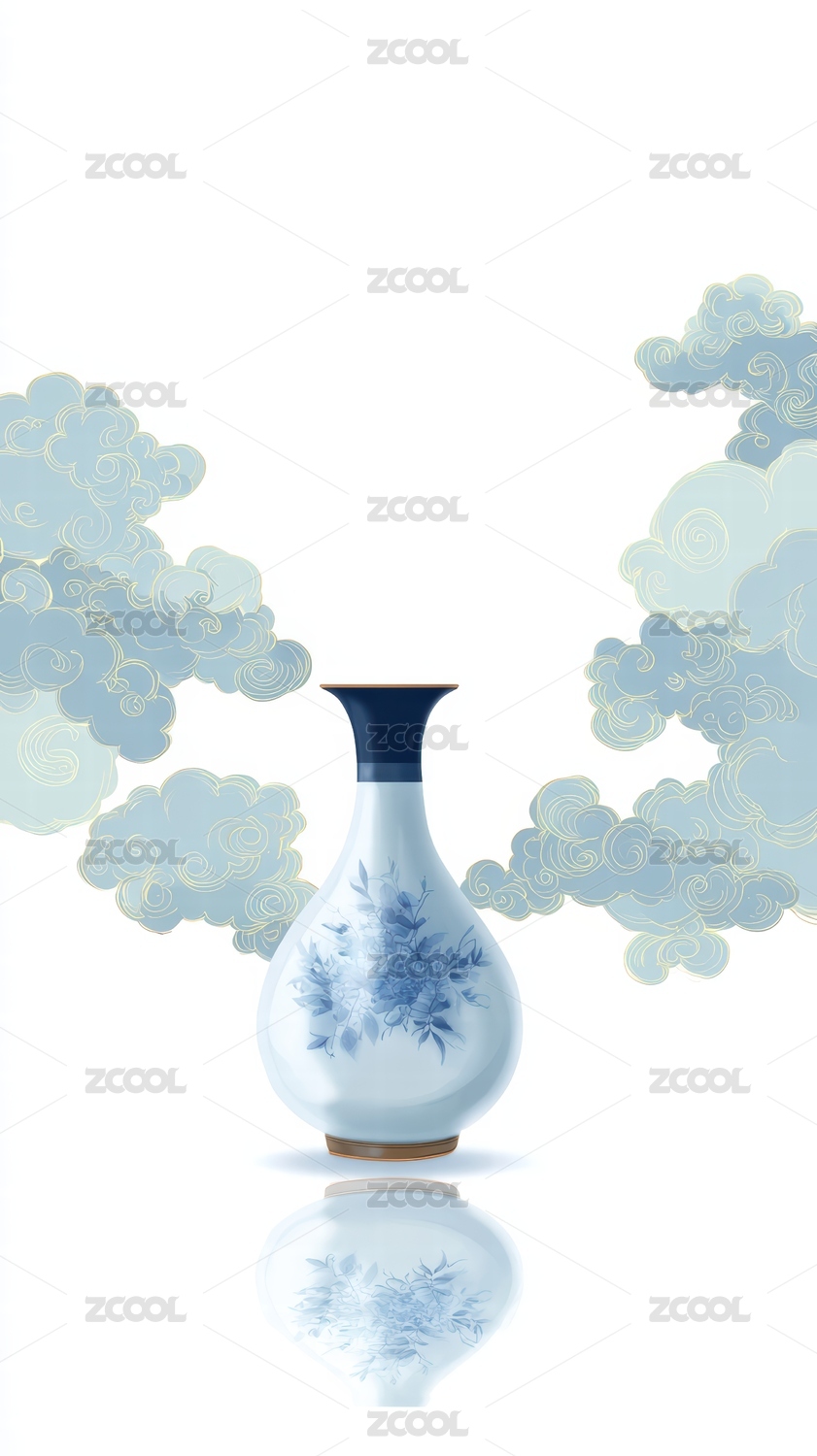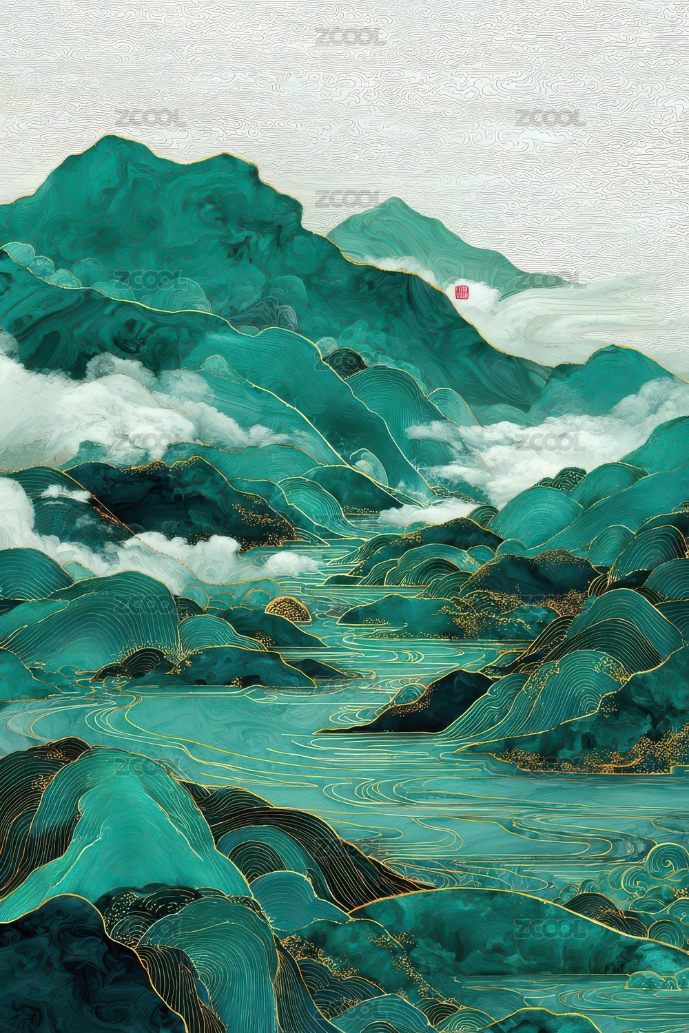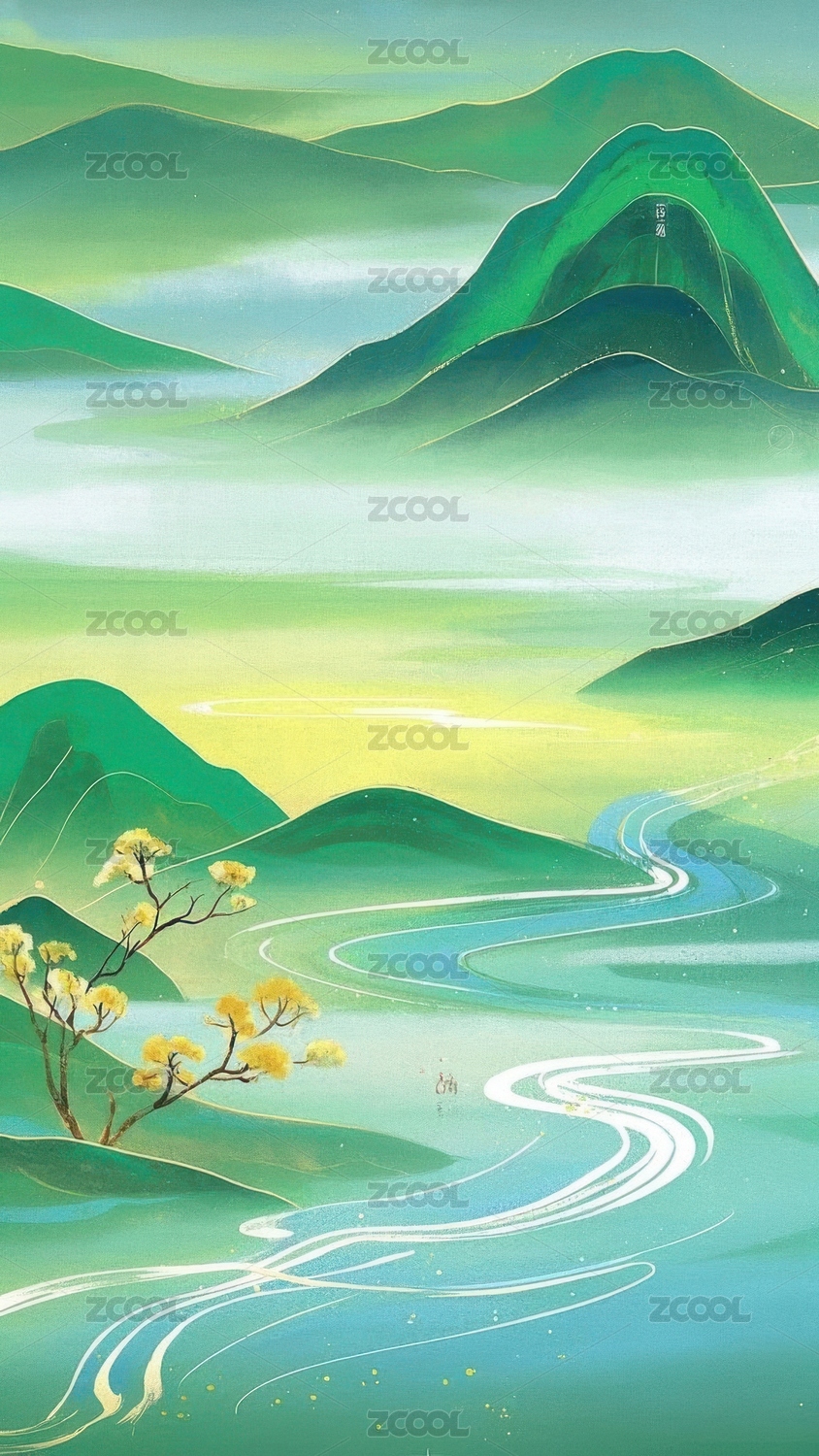 山水,花瓶,云朵,河流,插画,模板,艺术,装饰,风景,山水画
