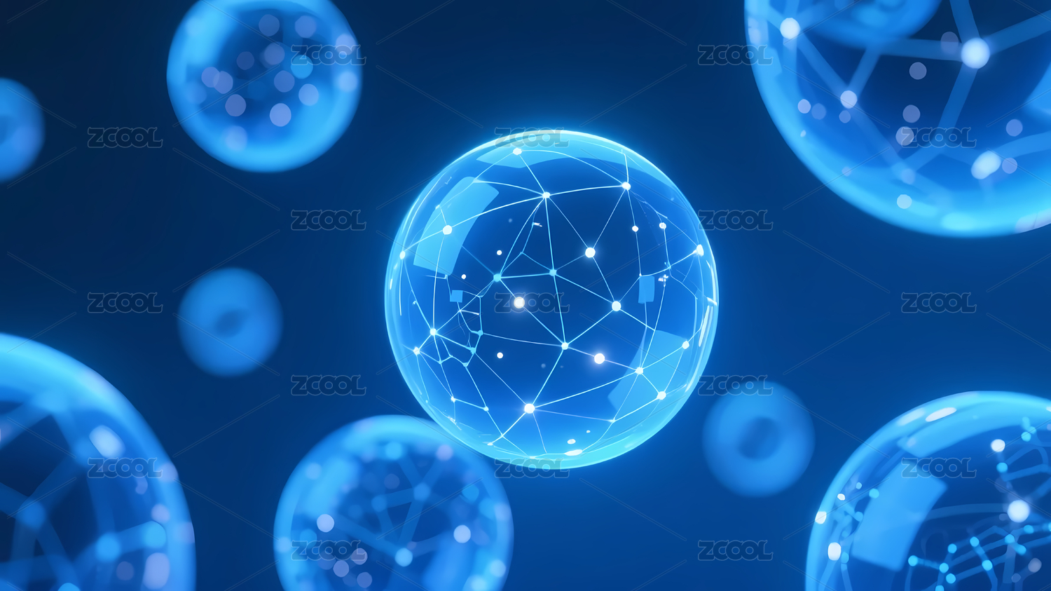 蓝色发光球体网络结构