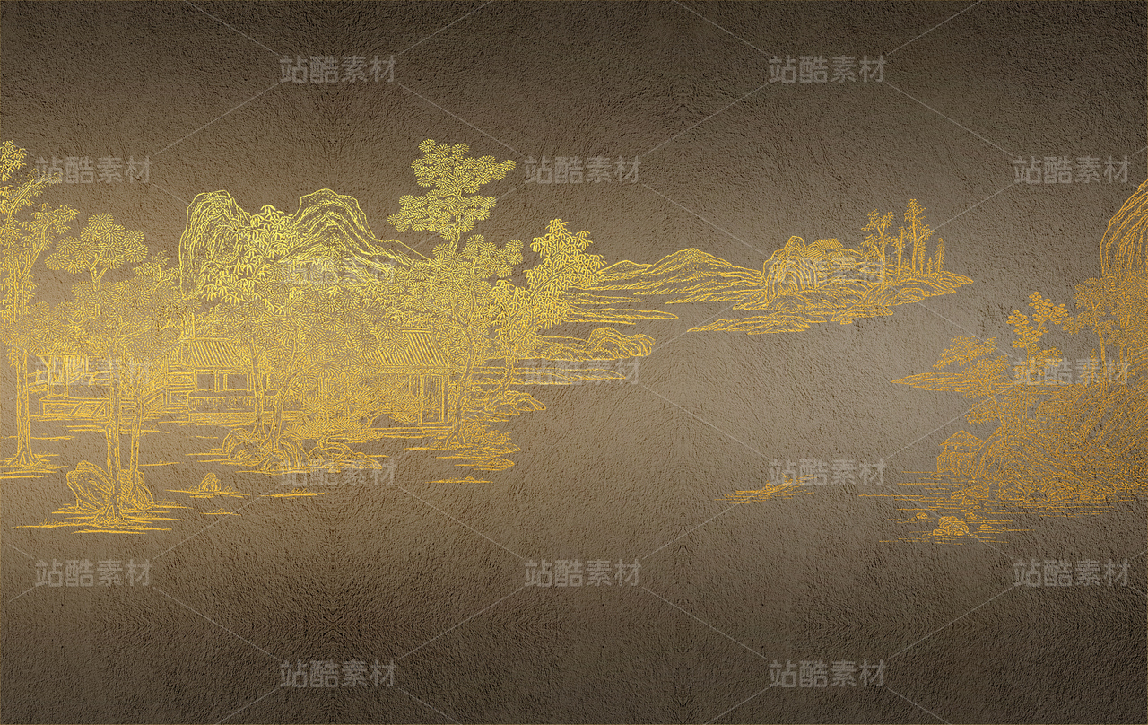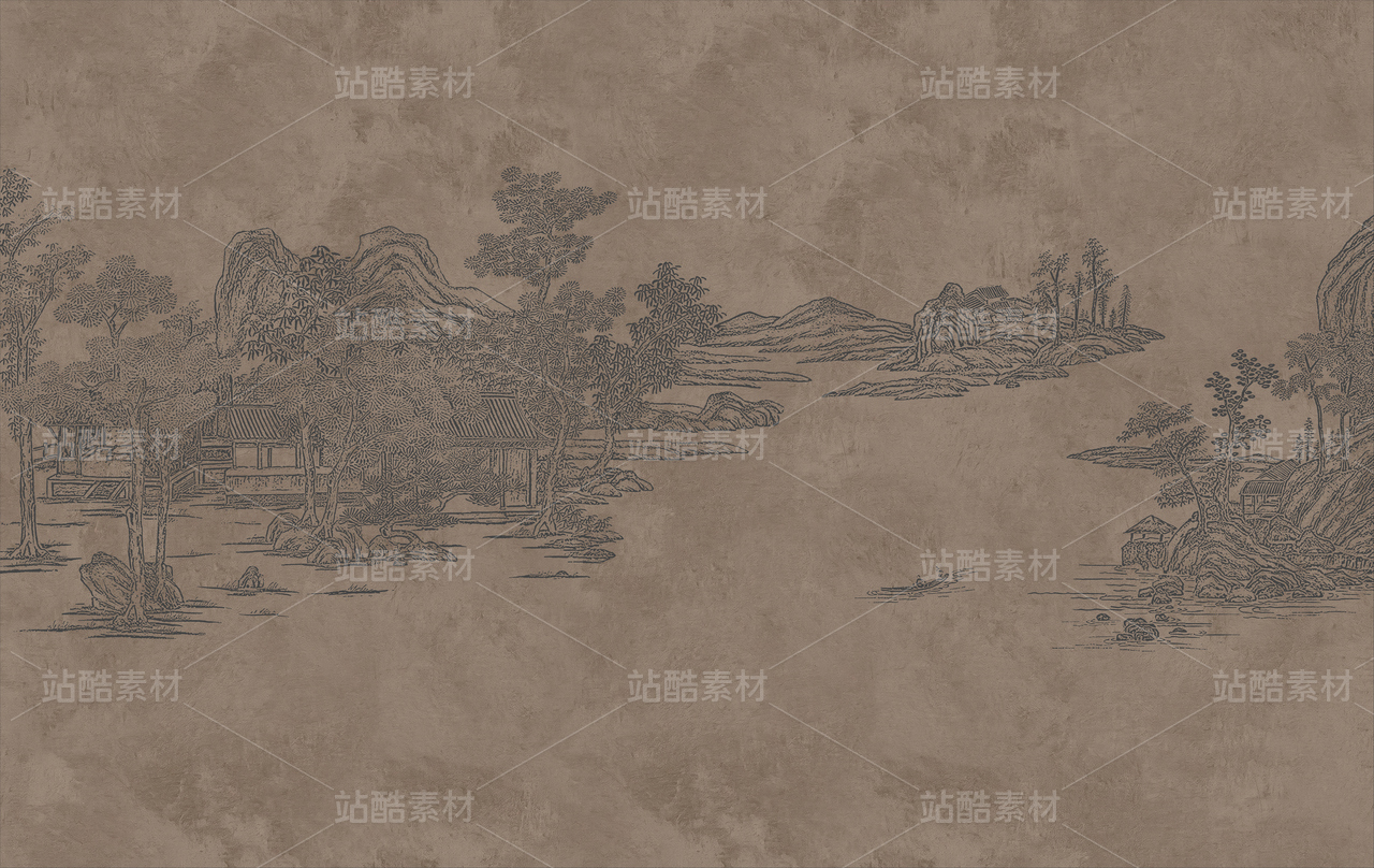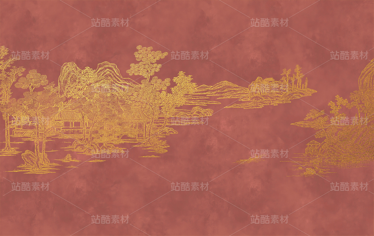 高清新款红灰亭台楼阁新中式工装背景墙05