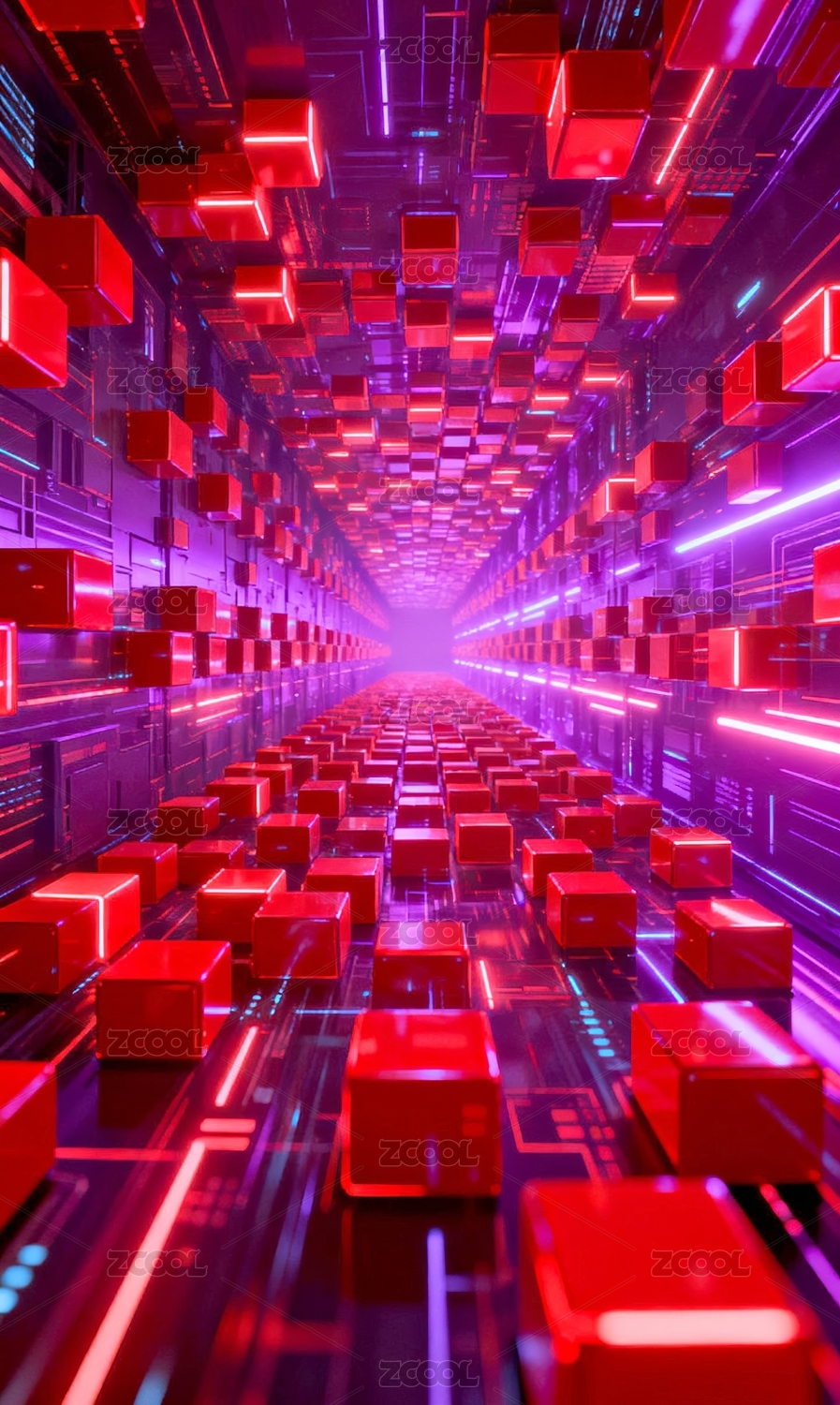 方块隧道赛博未来空间场景
