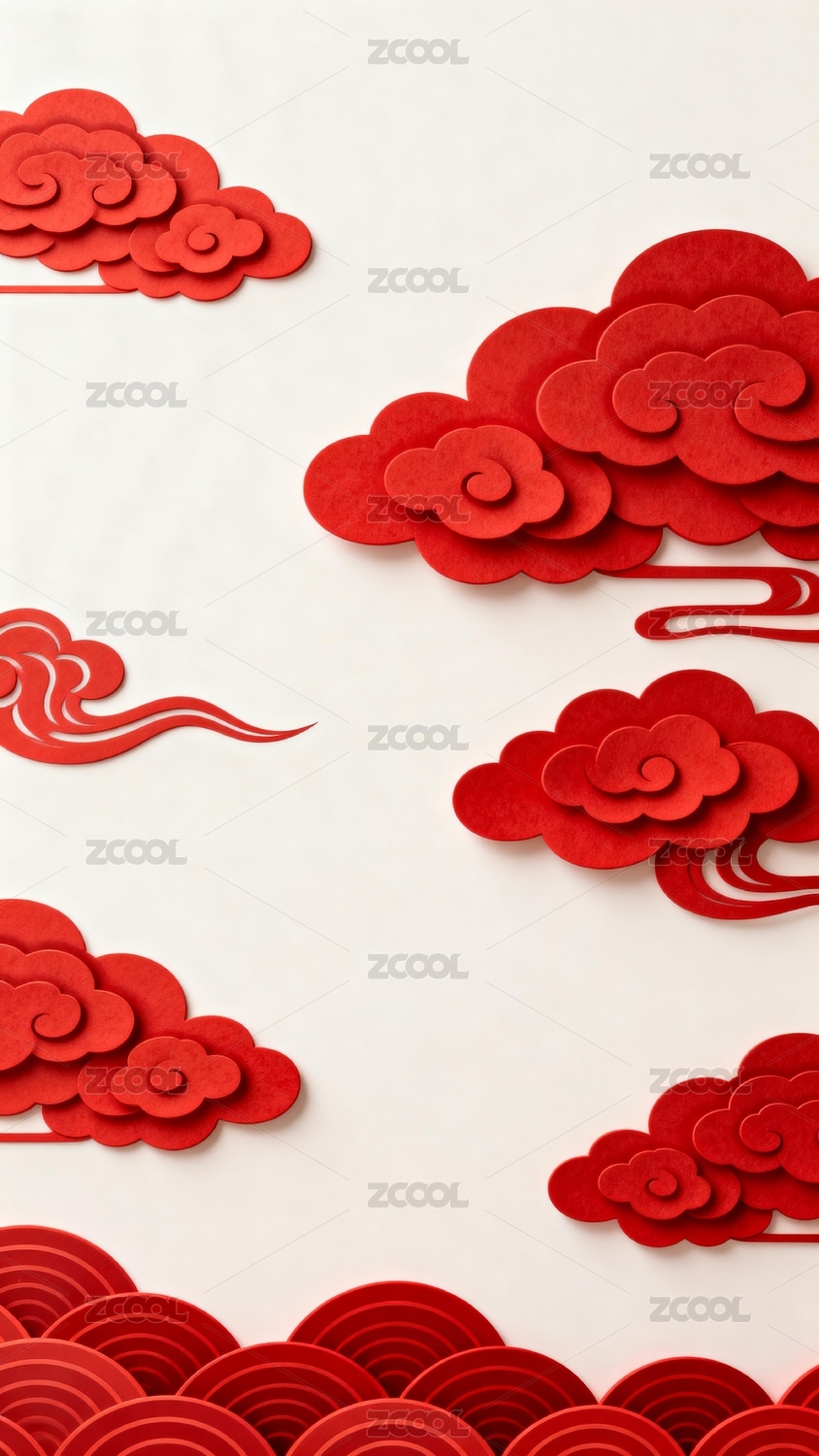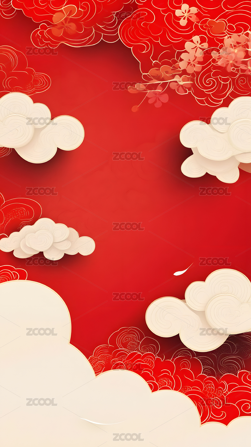 主视觉,商业,壁纸,场景,福字,祥云,喜庆,装饰,红色,剪纸