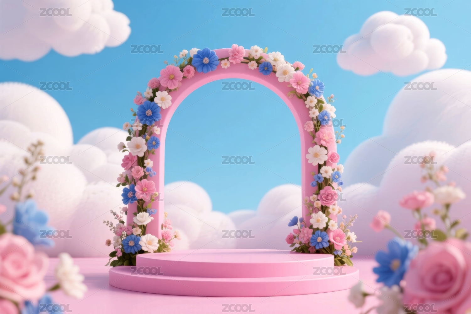 主视觉,商业,壁纸,舞台,粉色,婚礼,展示,场景,拱门,鲜花