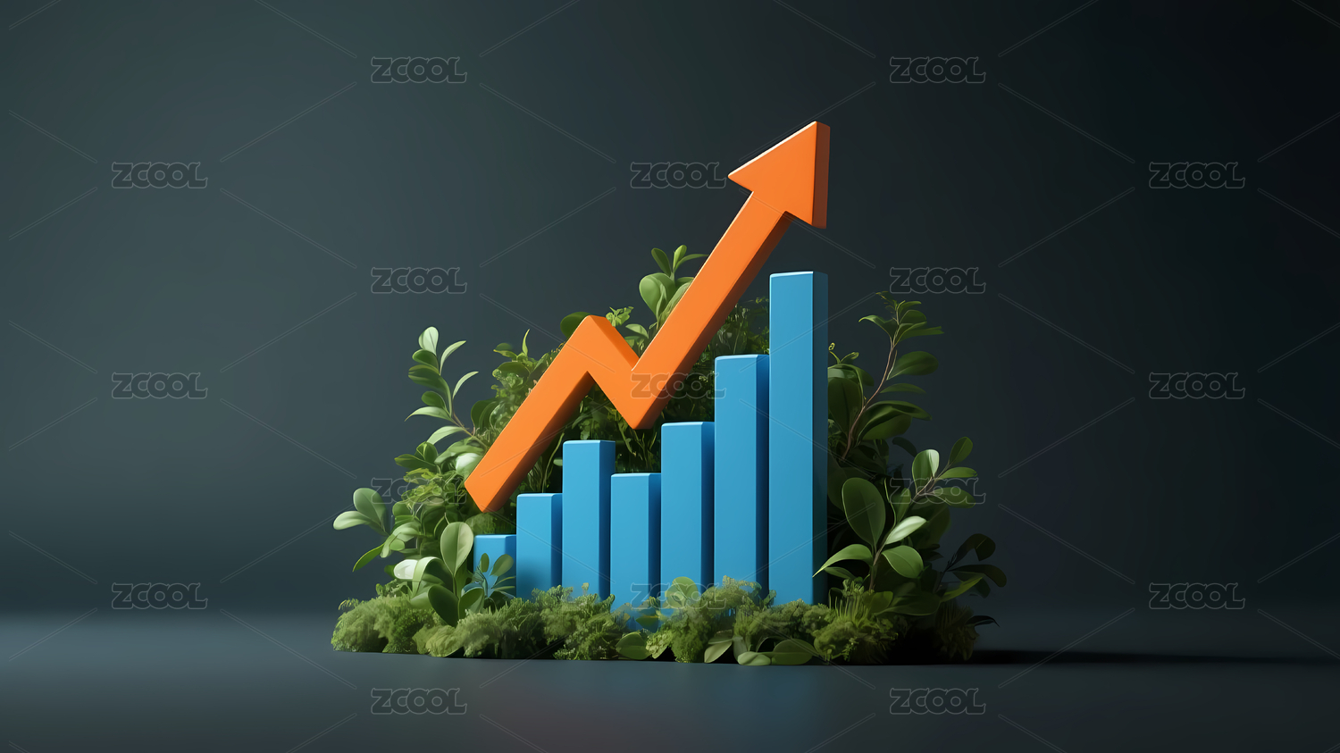 橙色渐变玻璃质感金融柱状图增长箭头背景