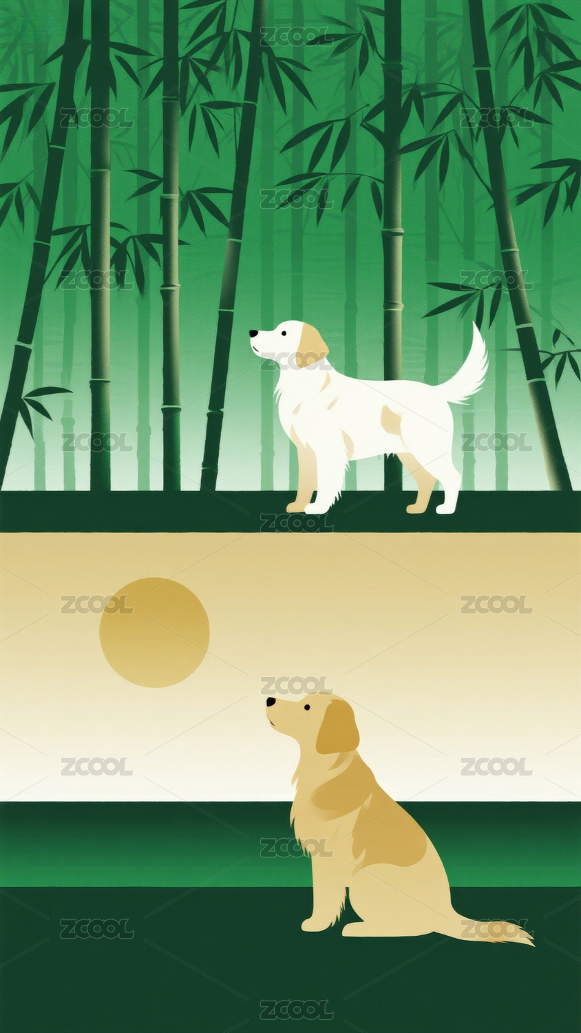 自然, 和谐,竹林, 狗, 绿色, 宁静, 动物, 背景, 生态, 户外