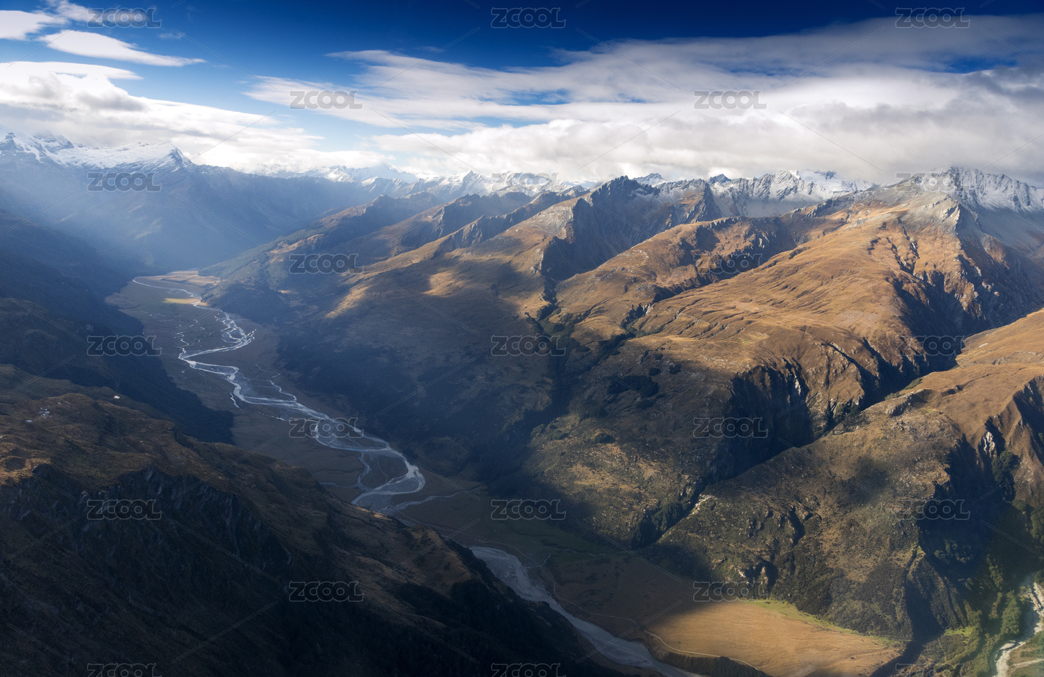 中国四川甘孜贡嘎山下的大渡河河谷航拍图