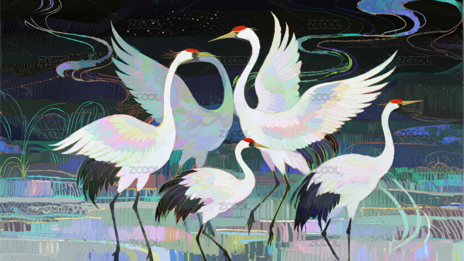 传统祥瑞仙鹤南山松树插画寓意松鹤延年