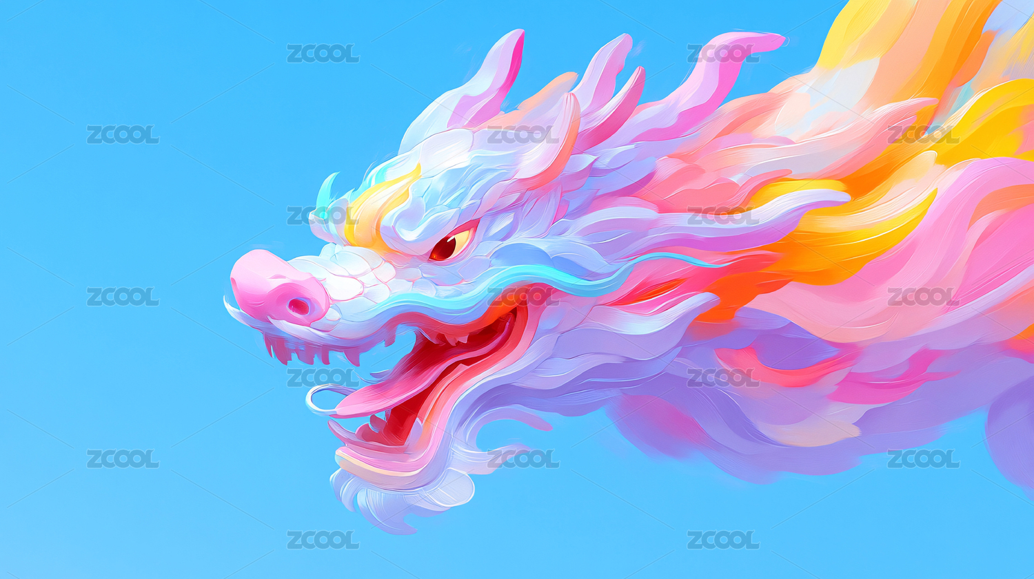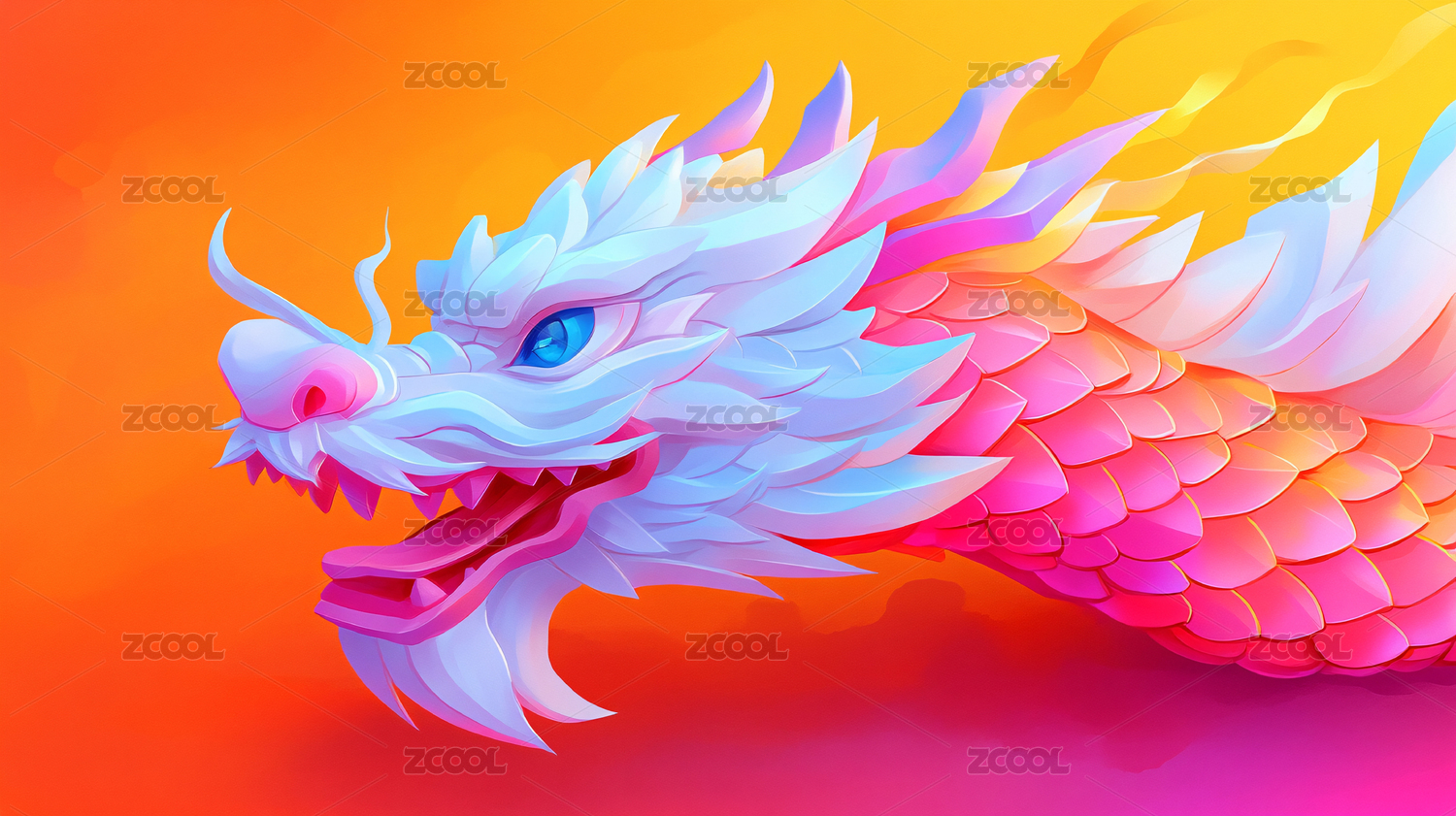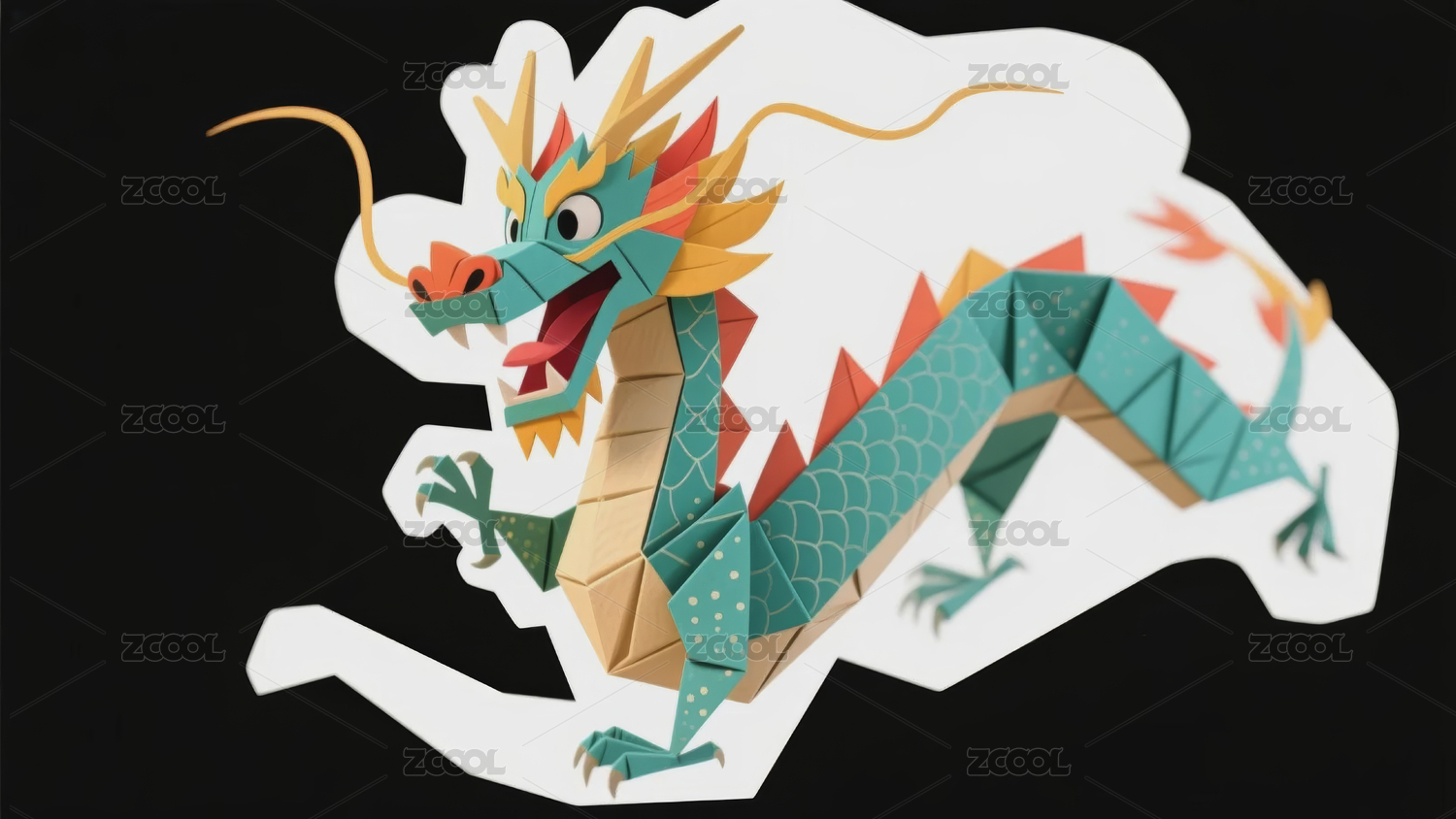 彩色纸片风青龙图腾艺术
