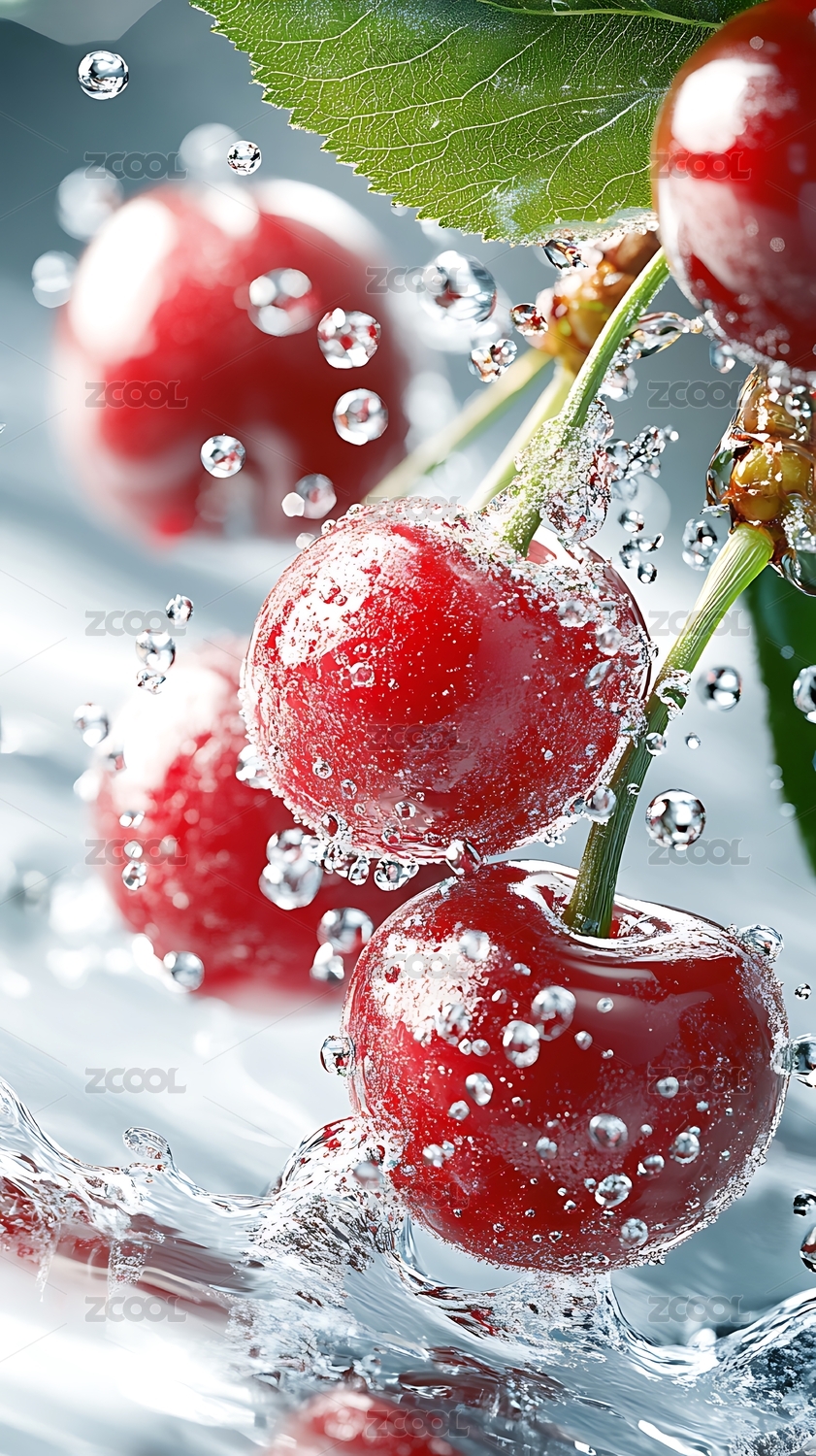 主视觉,商业,壁纸,樱桃,冰镇,冰块,水果,新鲜,夏日,清凉
