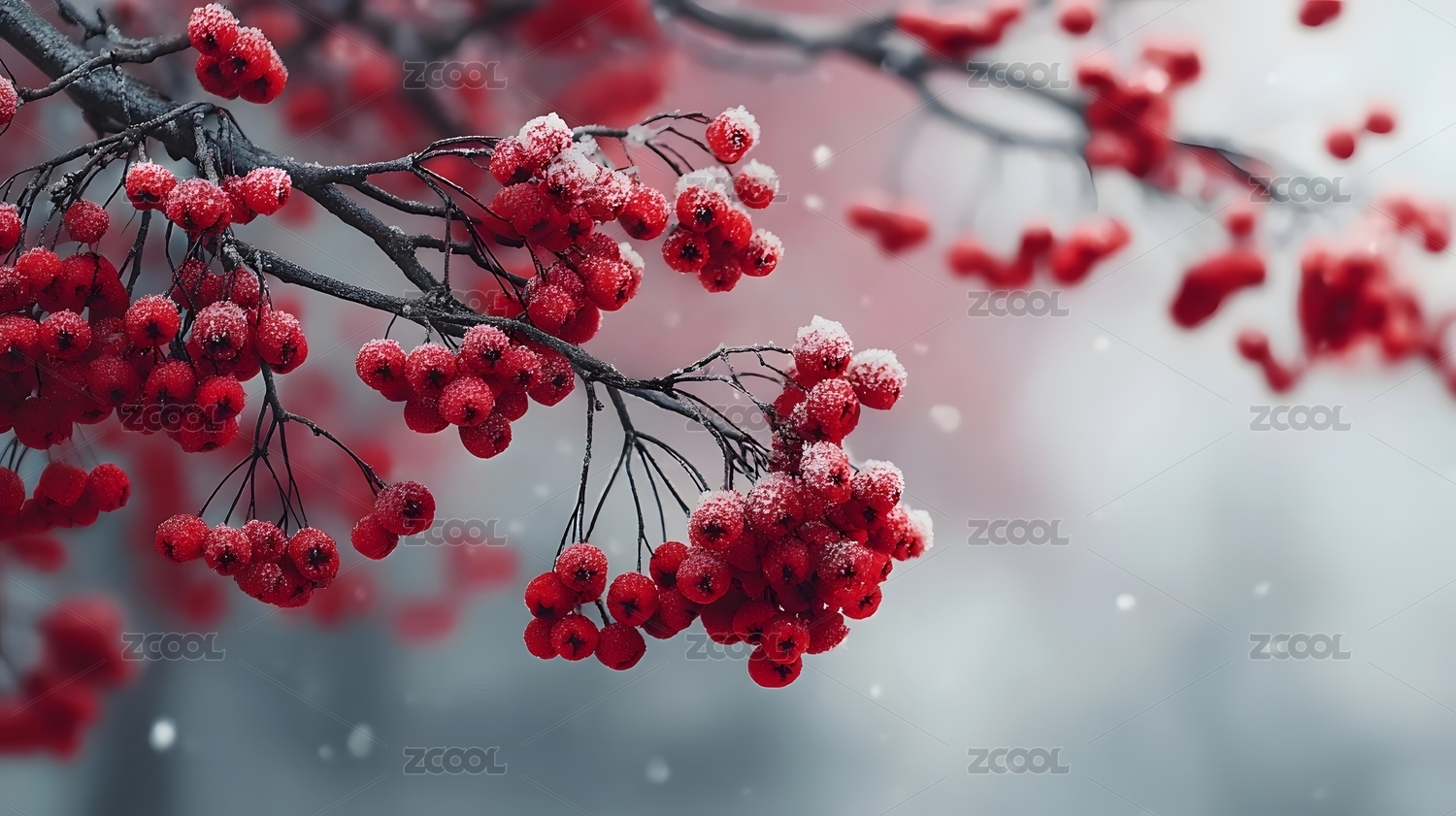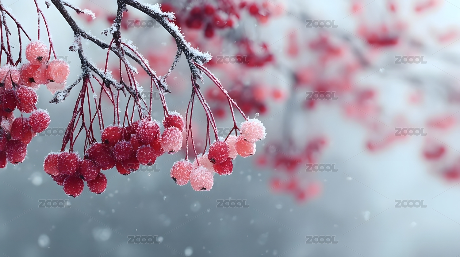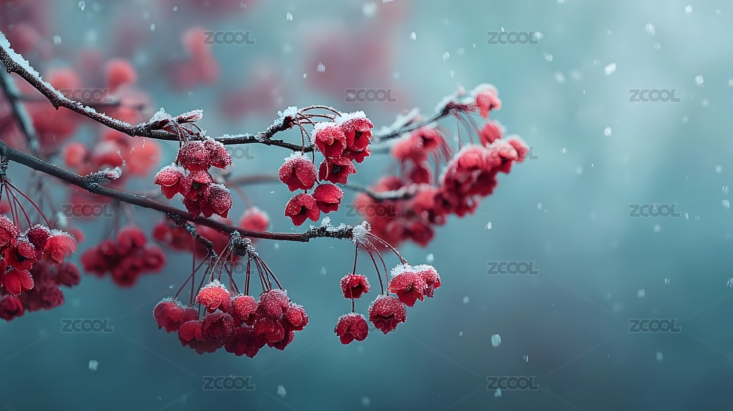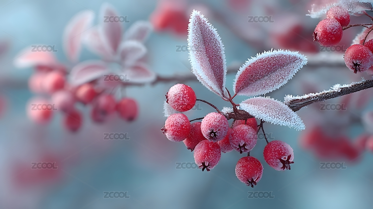 自然,静物,背景,枝条,冬天,红色,雪花,霜,红果,冰晶