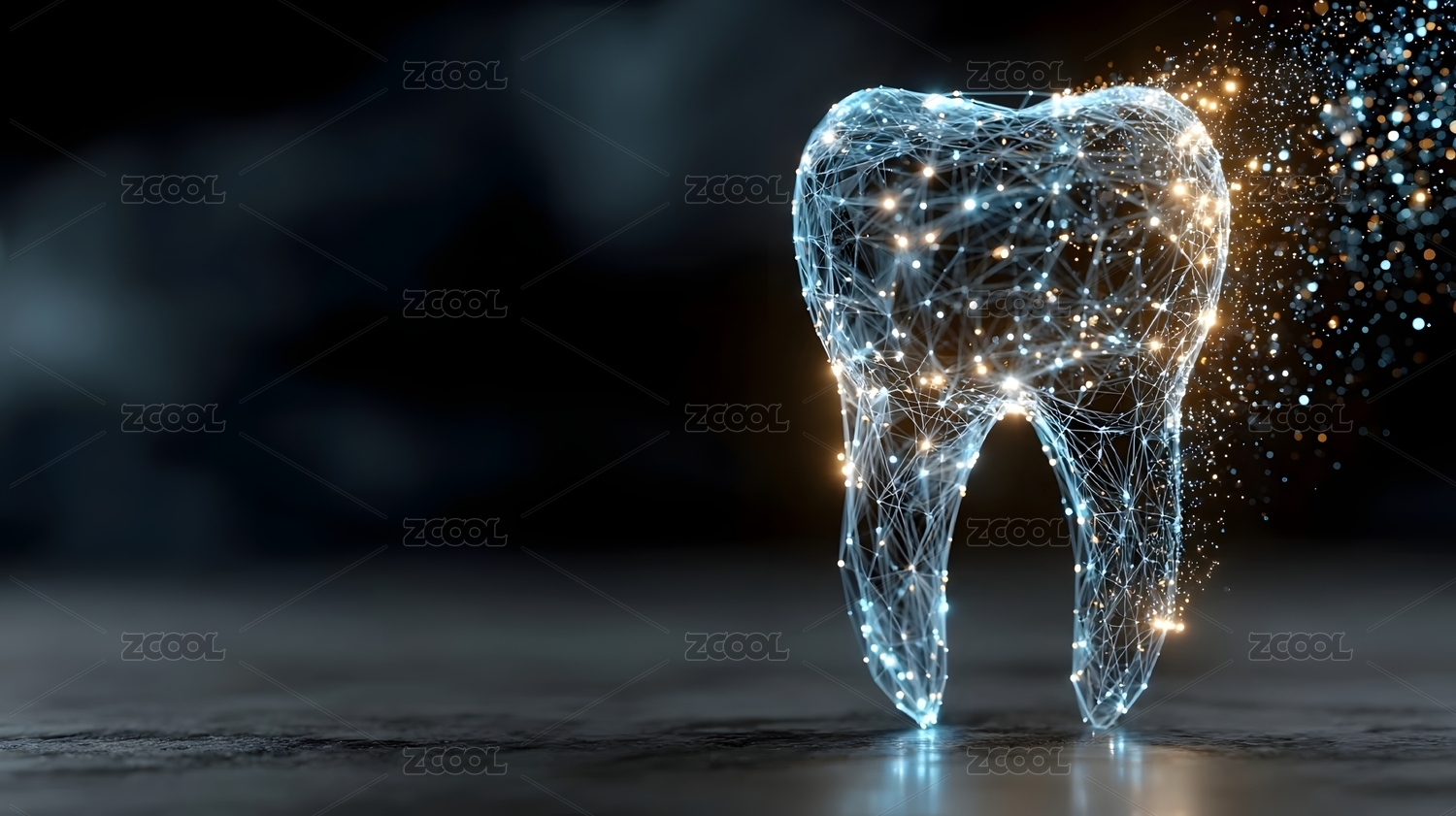 蓝色粒子构成的牙齿图像