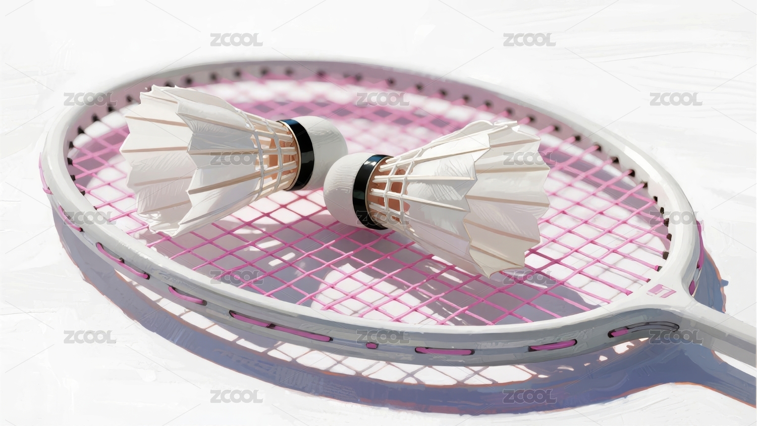 羽毛球,羽毛球拍和一个白色的羽毛球