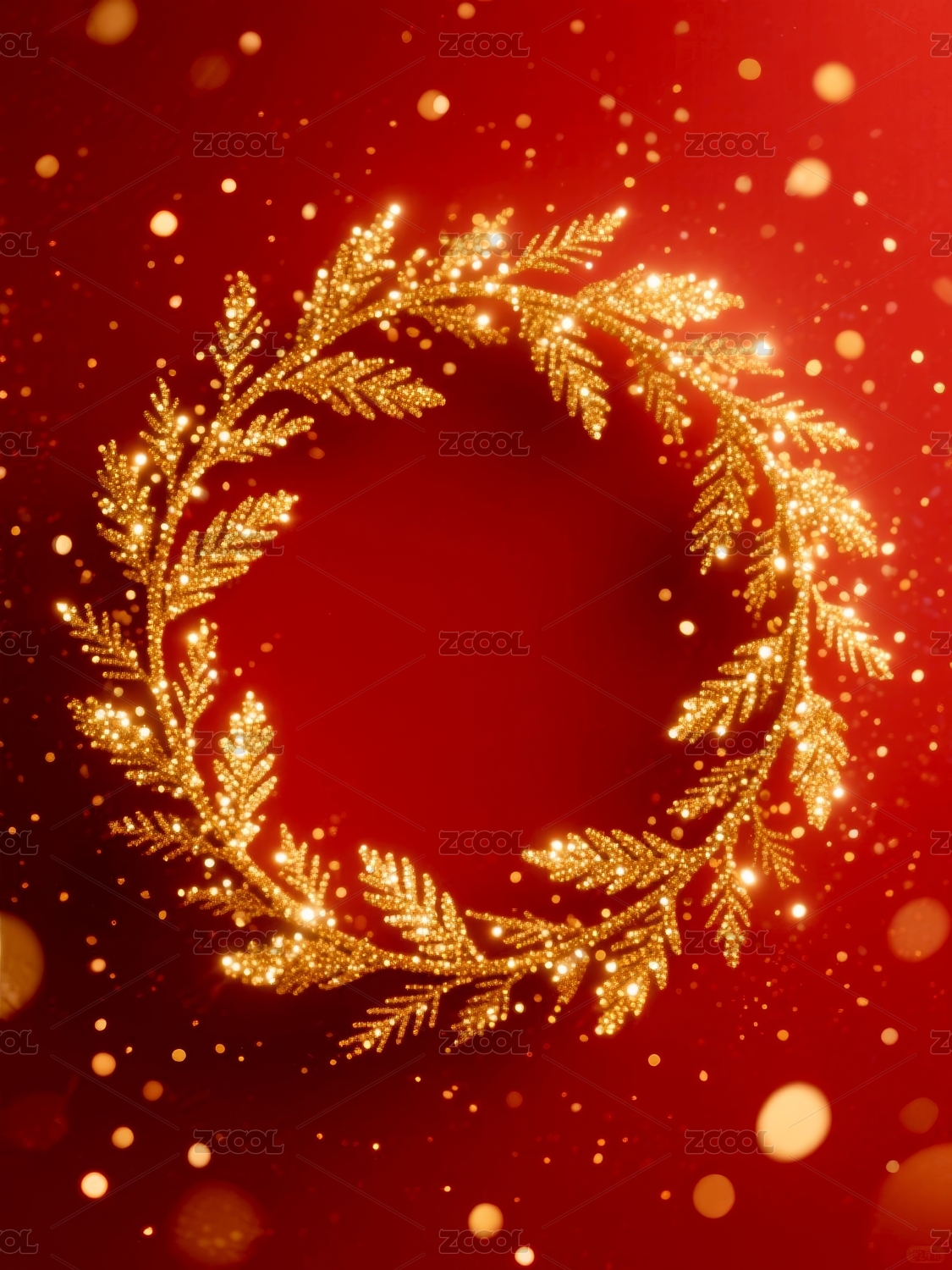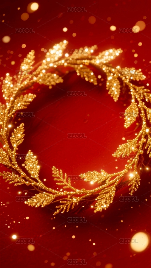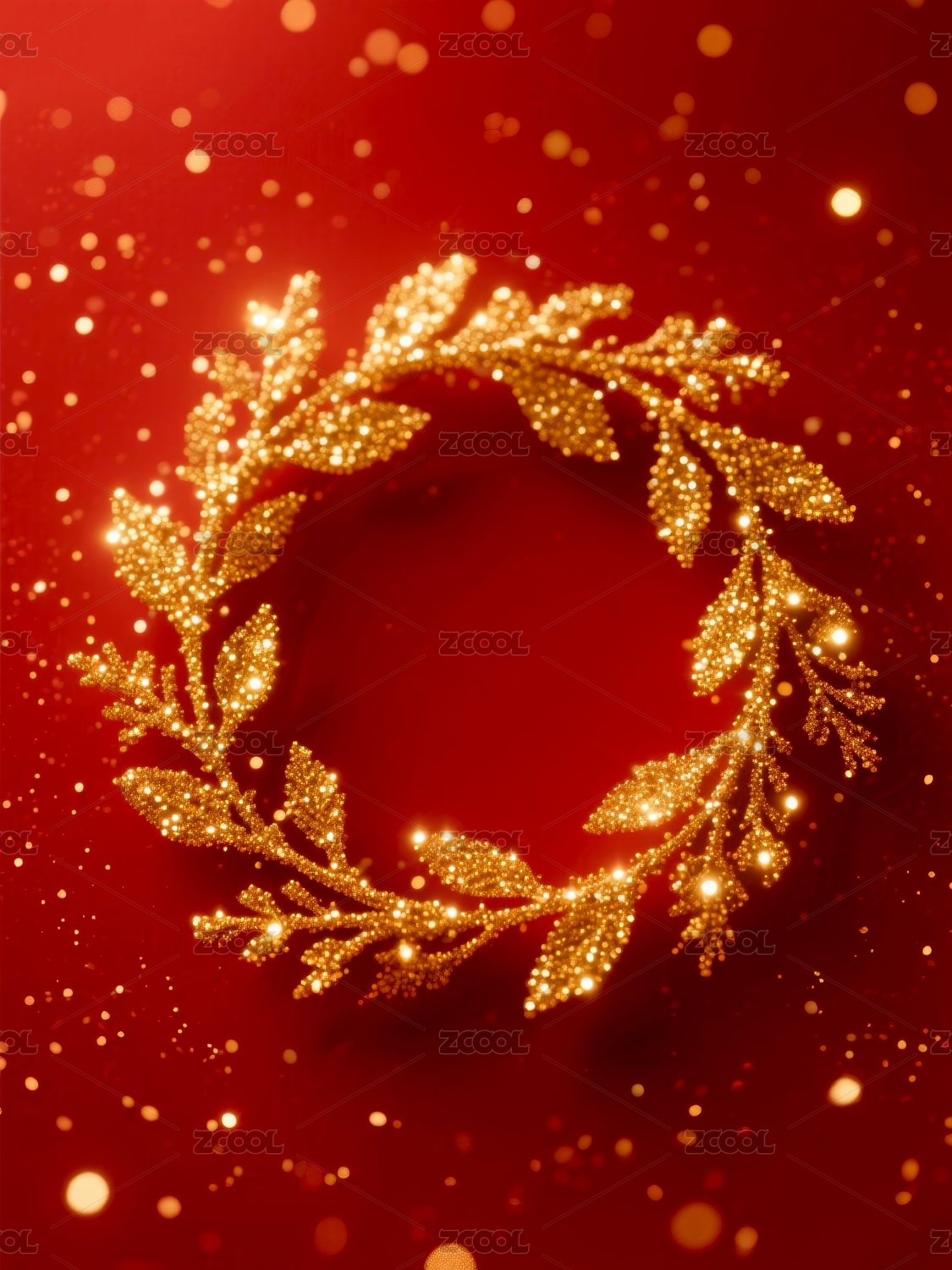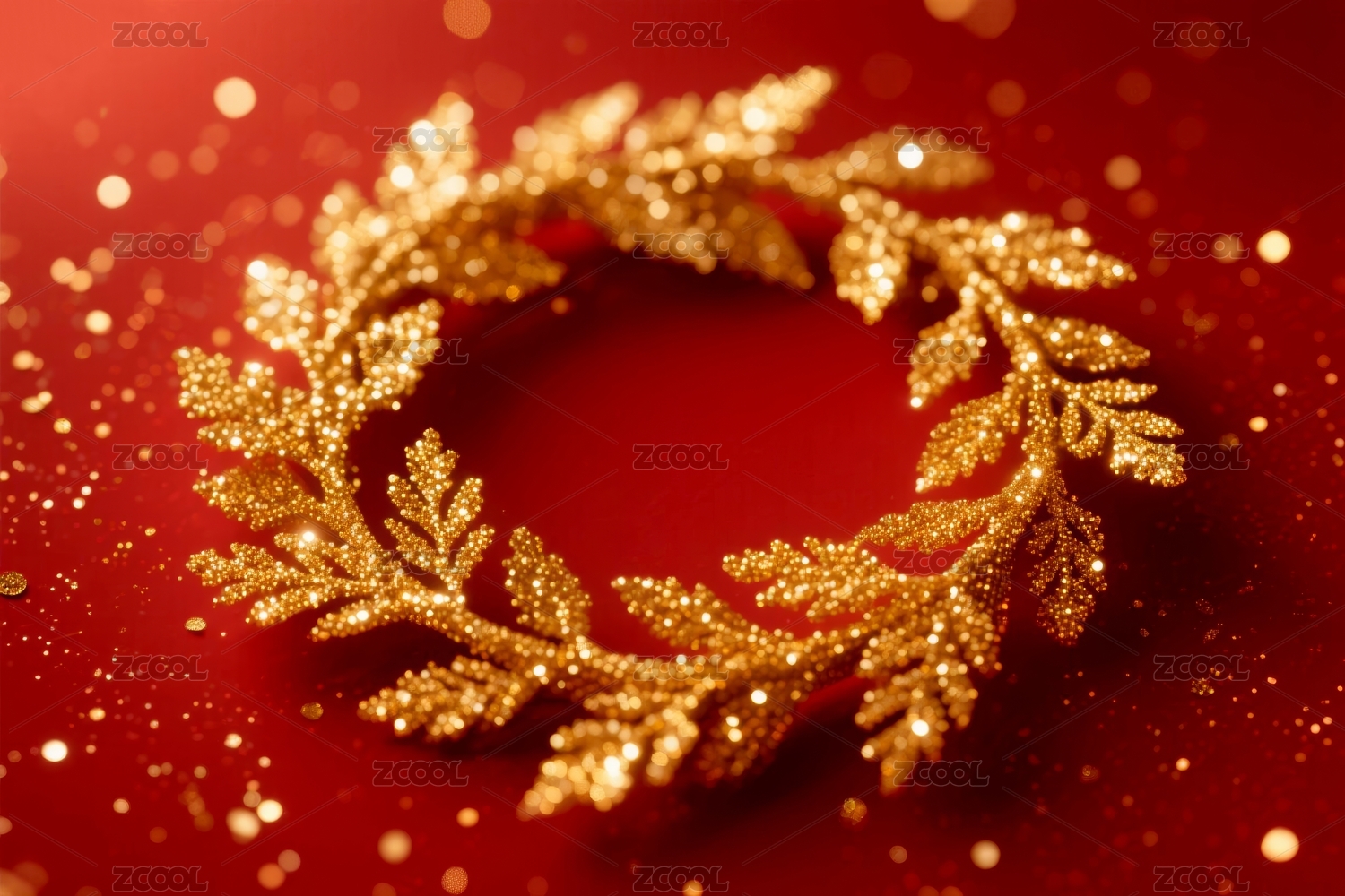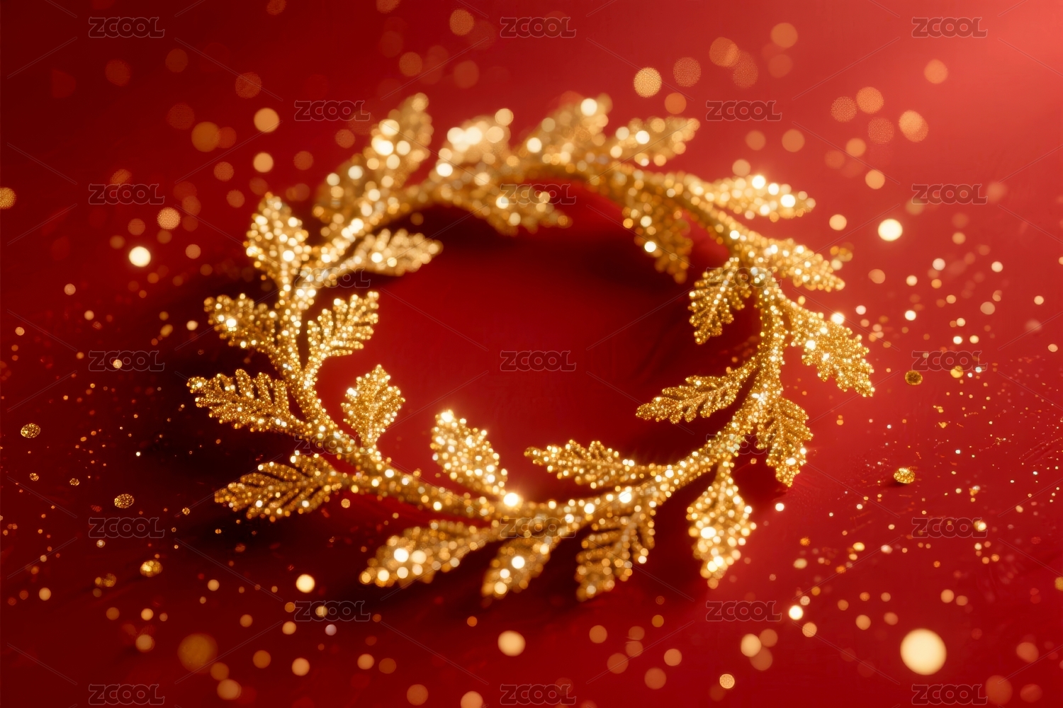 主视觉,商业,壁纸,场景,金色,花环,华丽感,节日,装饰,红色
