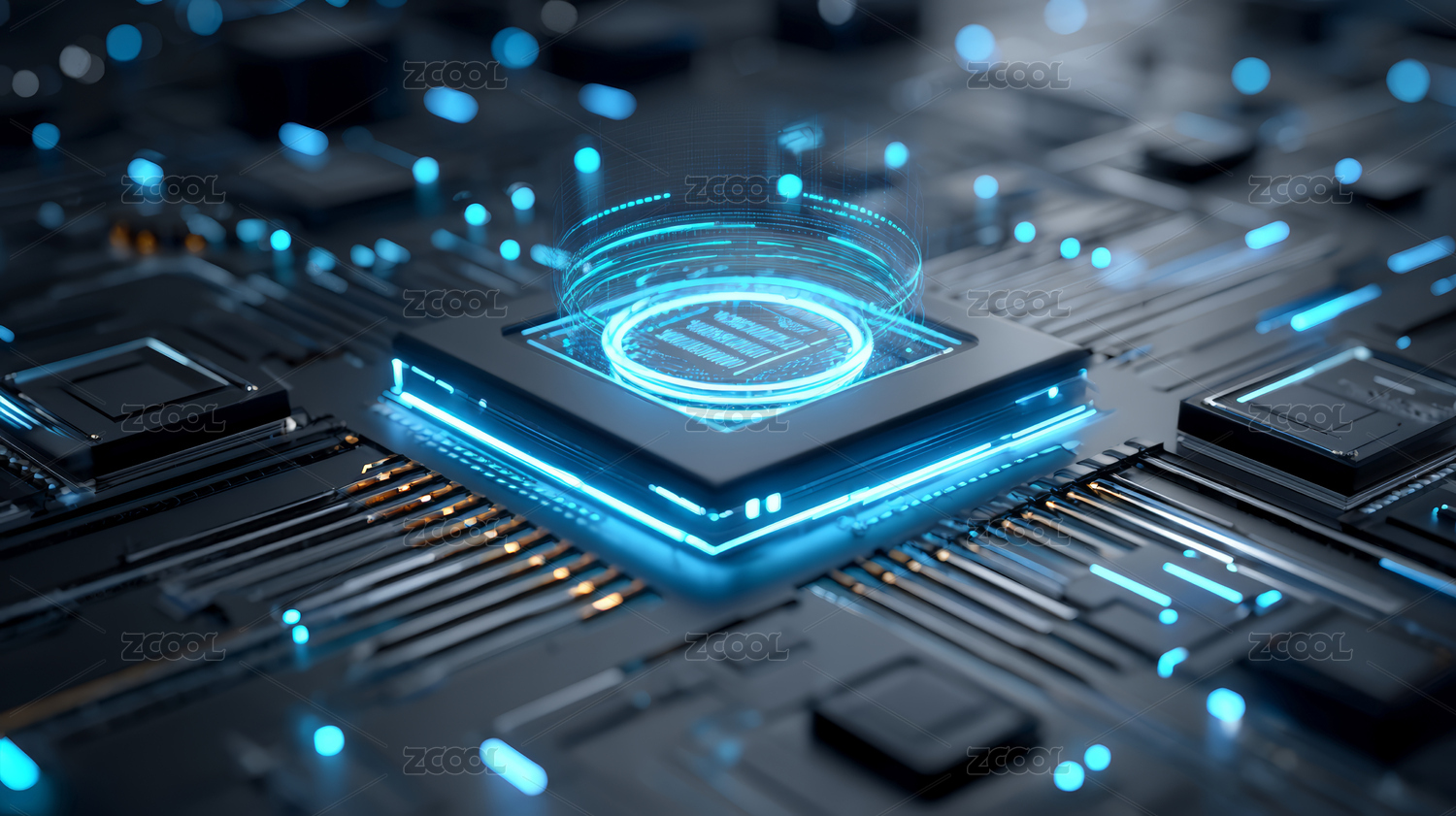 芯片,高科技,电路板,光环,未来感,技术,电子,元件,蓝色,现代