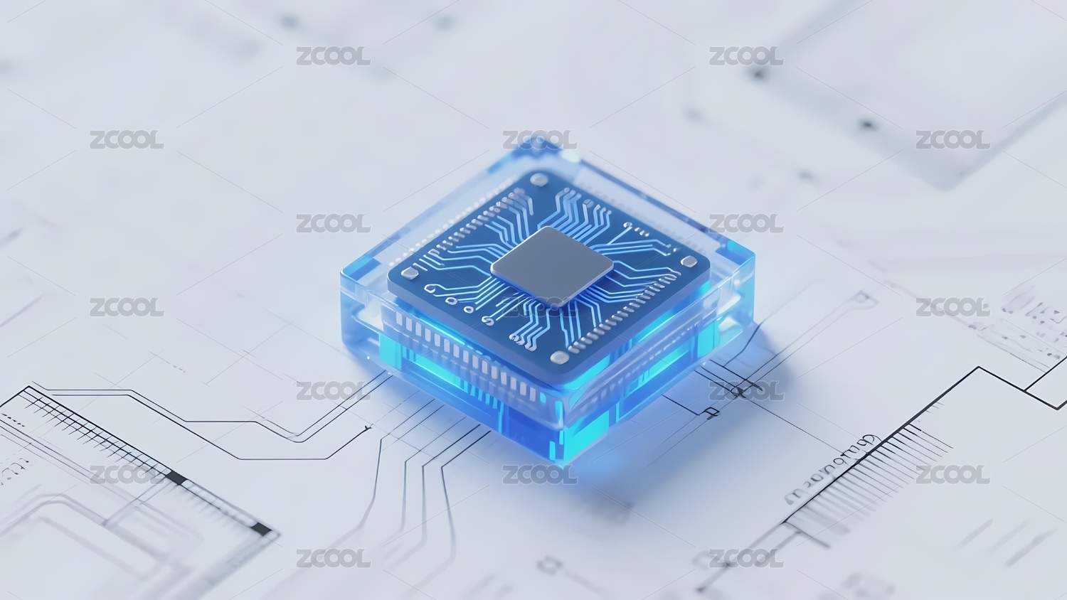 AI大模型C4D科技蓝芯片路线背景视觉图