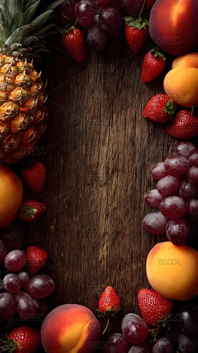 木板,黄色,背景,绿色,紫色,红色,水果,菠萝,草莓,橙子