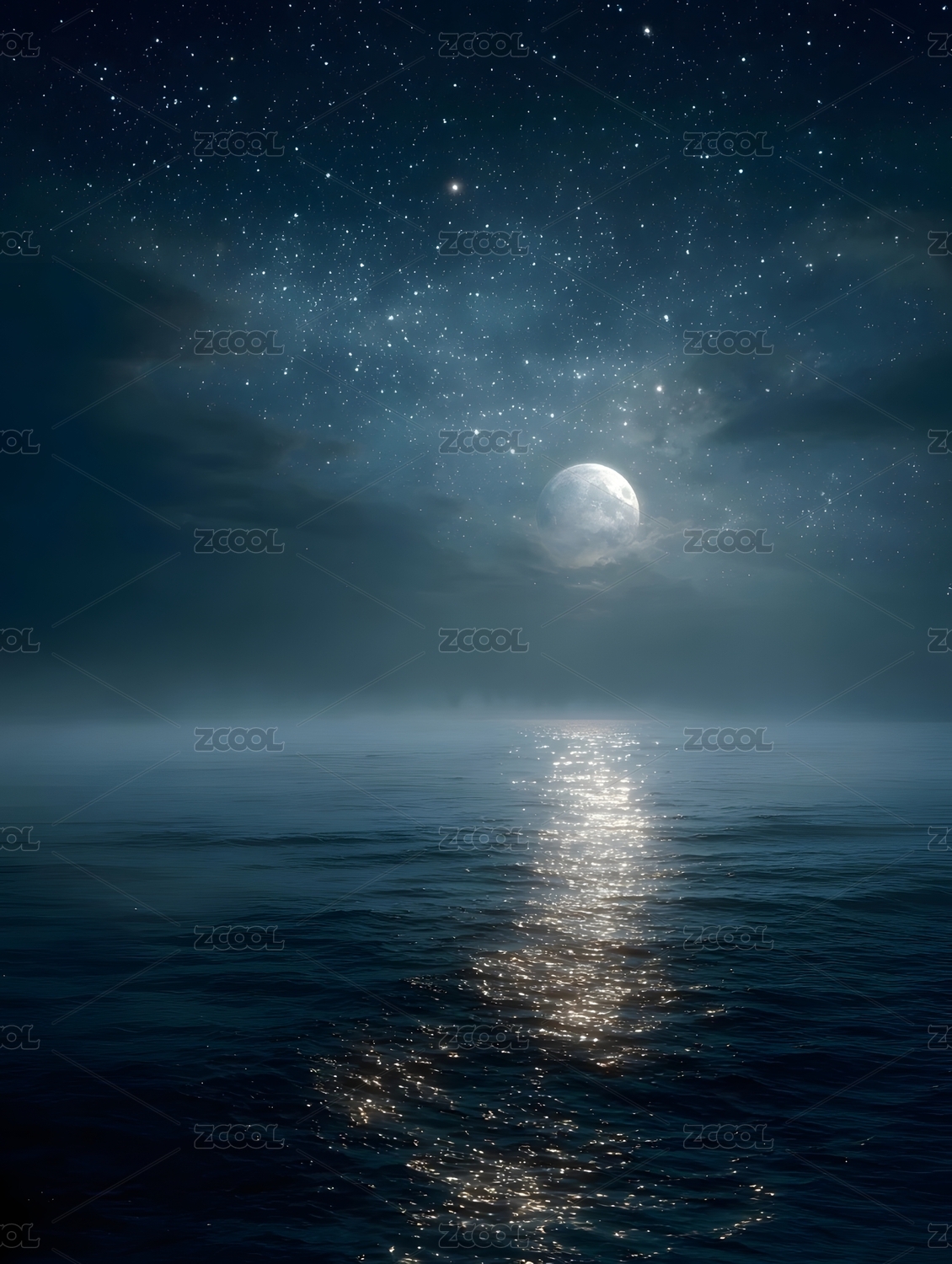 月亮高清背景唯美梦幻插图海面满月壁纸