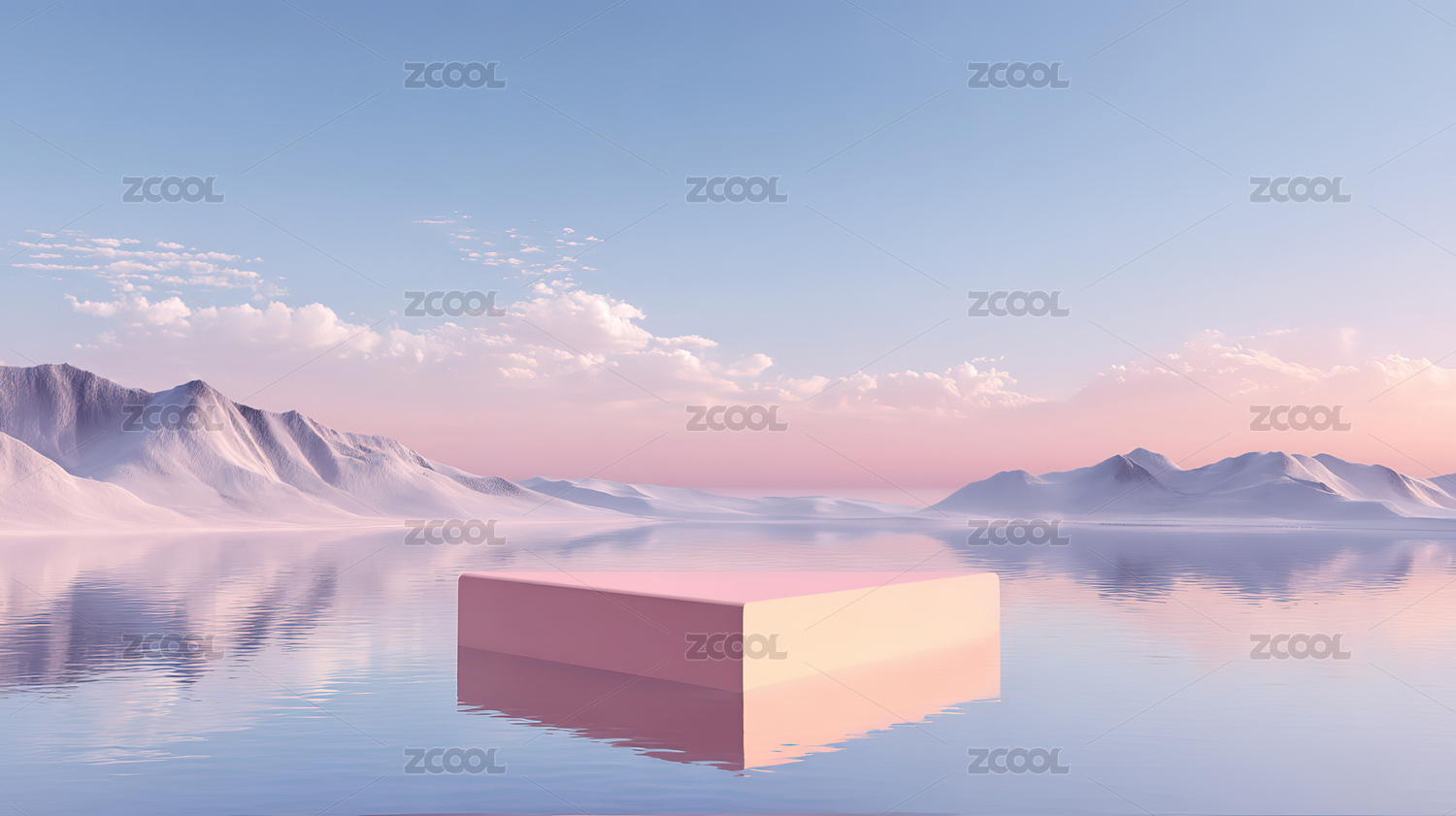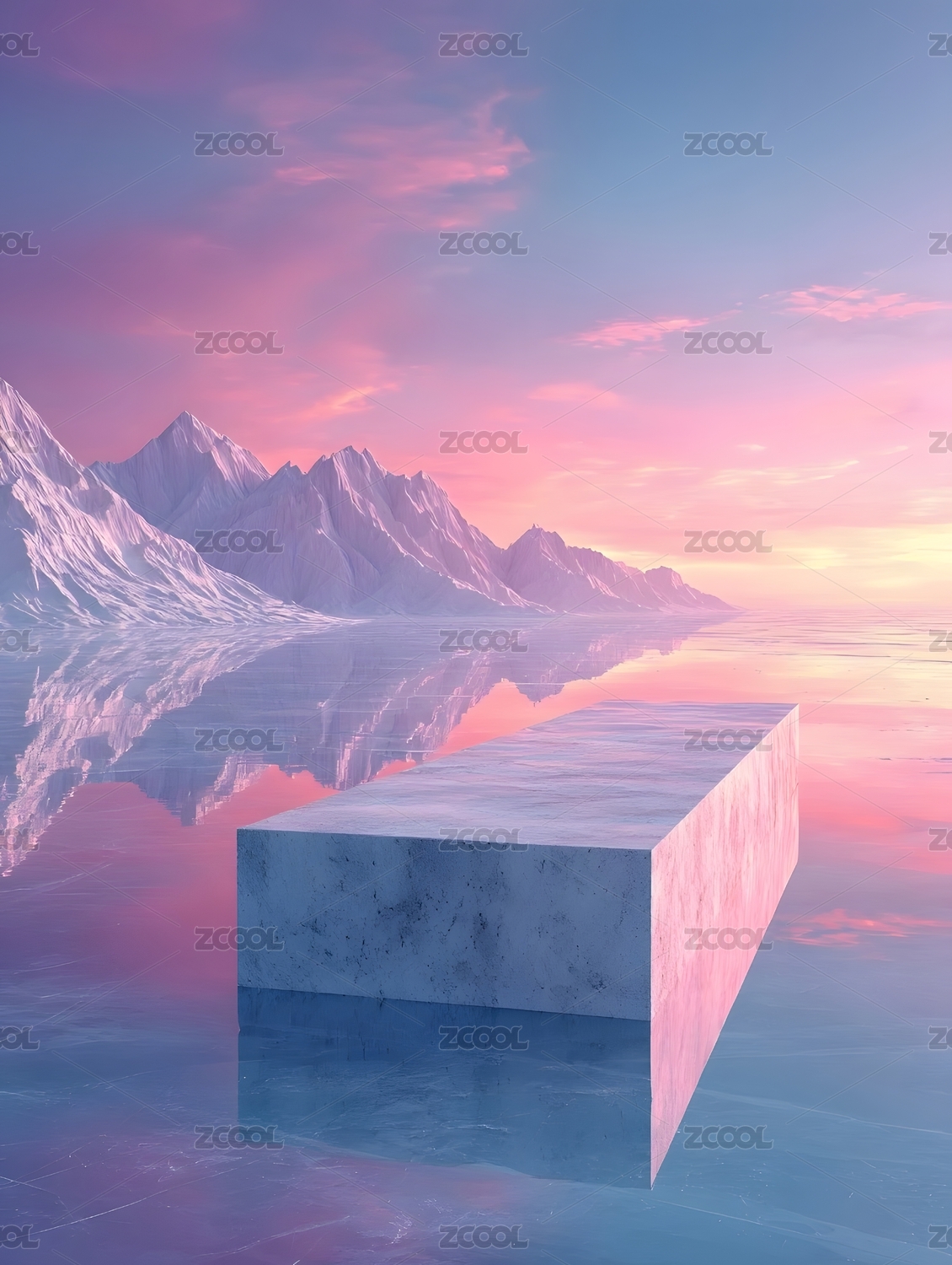 山脉,风景,粉色,自然,天空,地平线,湖,水面,立方体,日落